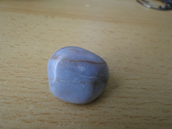 Hmm... die Farbe erinnert mich an blauen Calcedon, aber ich weiß auch nicht ob er vielleicht gefärbt ist.