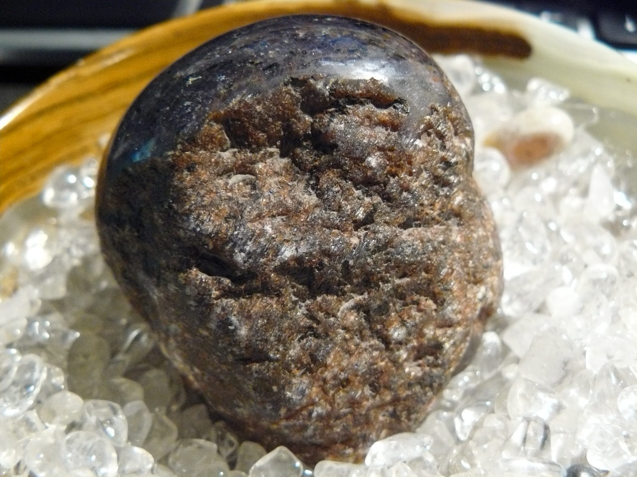 Er hat so eine blaue Stelle an der Seite, dass ich eher einen Labradorit vermuten würde.