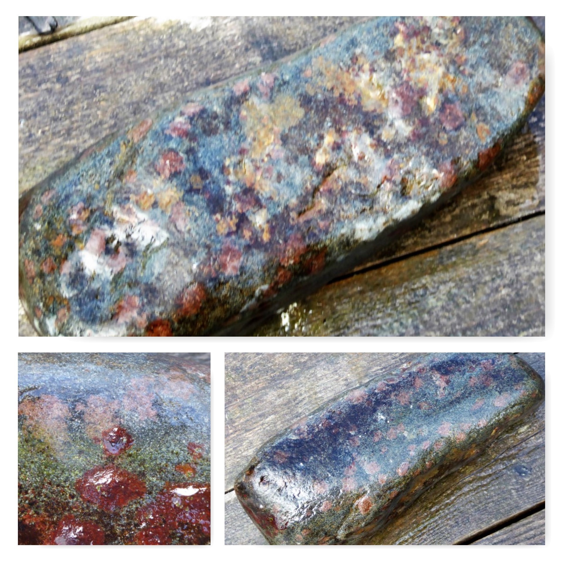 Heute ein paar große besondere Steine mitgenommen, hier der erste, 287 (+/- 14 Ma) Millionen Jahre alt, und man braucht schon Glück um ihn zu finden kommt aus dem Nordwesten von Dalarna, die abgeschlagenen Seiten werde ich wohl mal schleifen