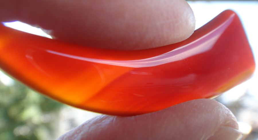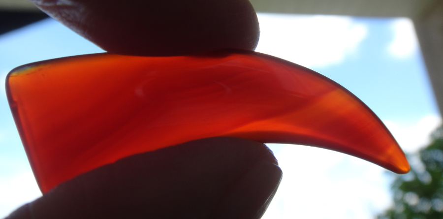 Ich habe einen sehr schönen Karneolzahn, auch einer meiner ersten. Er hatte ursprünglich eine Metallkappe mit Öse drauf, welche aber abgegangen ist.