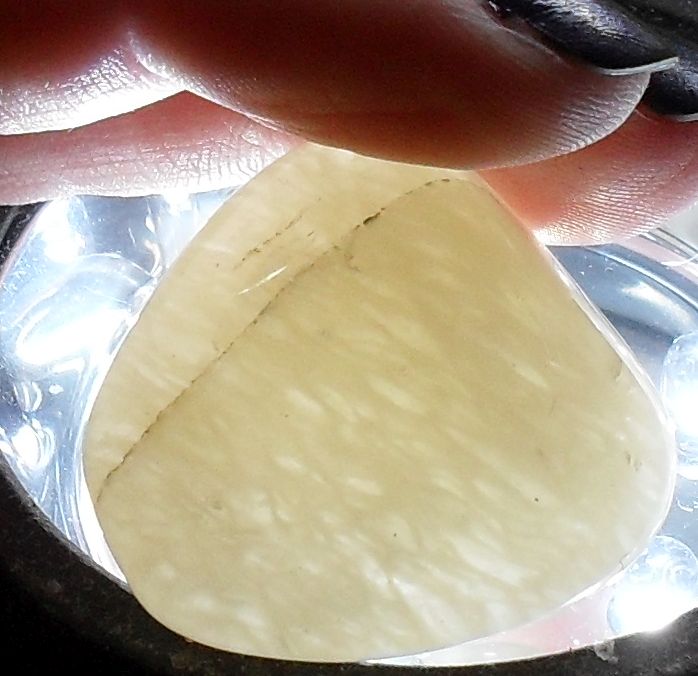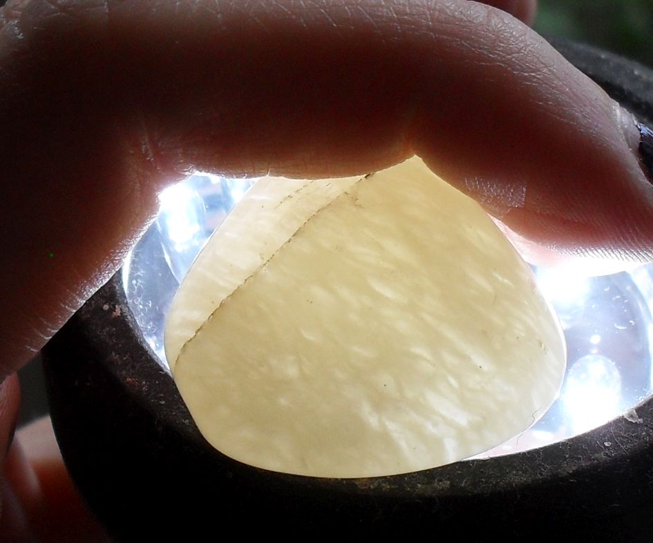 Fühlt sich sehr glatt an, hat (bis auf diese transparenten Stellen) keine erkennbare Struktur.... Erinnert mich irgendwie an Chaldedon :?: