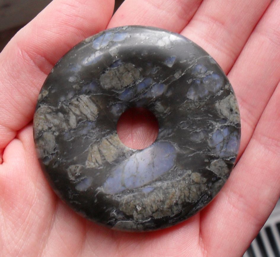 - laut meiner Info ist Llanit ein Material aus Basalt (schwarz/grau), Feldspat (rosa) und blauem Chalcedon. Haut das hin?
