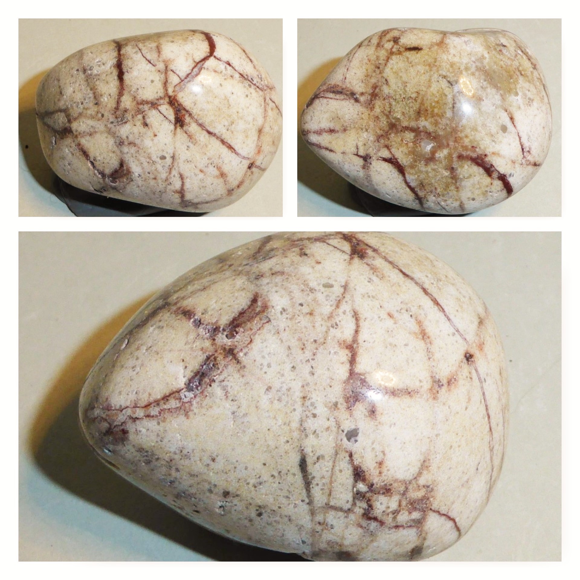 Ja der ist nun fertig Anschi, glänzend poliert. Fotografiert diesmal im LED Licht.Hab nicht alle Kerben platt gemacht, weil ich Steine gerne auch in ihrer Natürlichkeit mag, wie Menschen, mit Kerben und Kanten