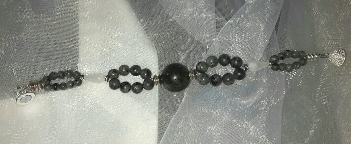 Kette und das dazu passende Armband aus Larvikit und Mondstein.