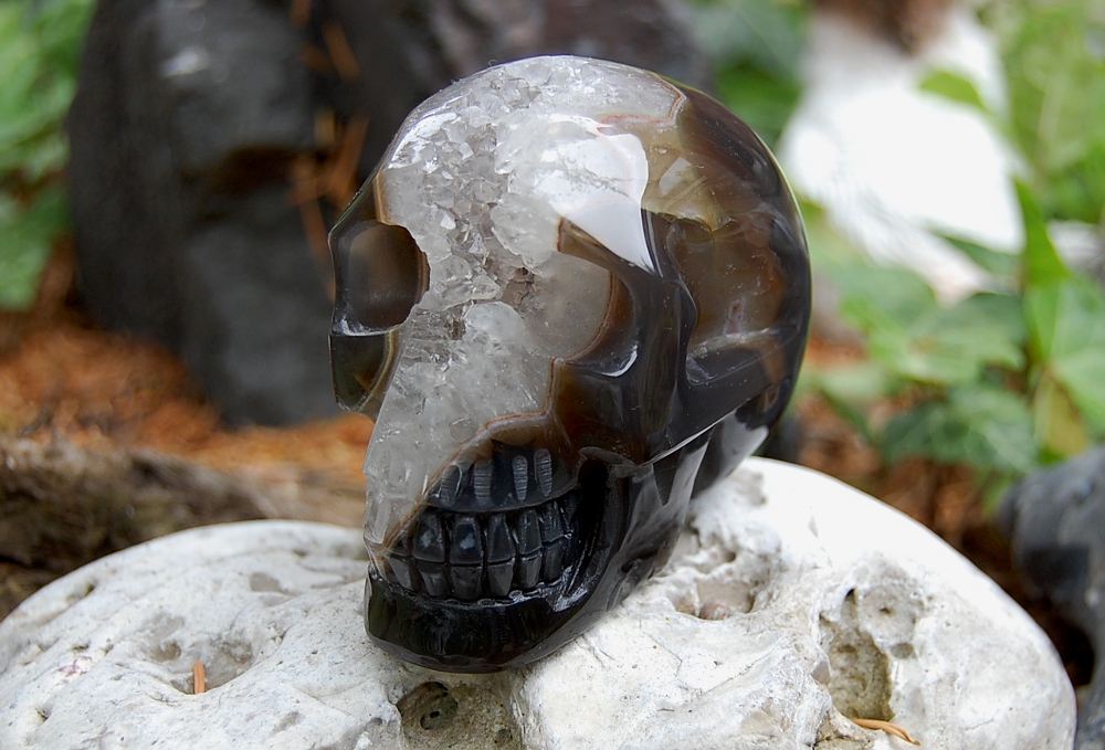 Achat mit Kristalldruse Schädel