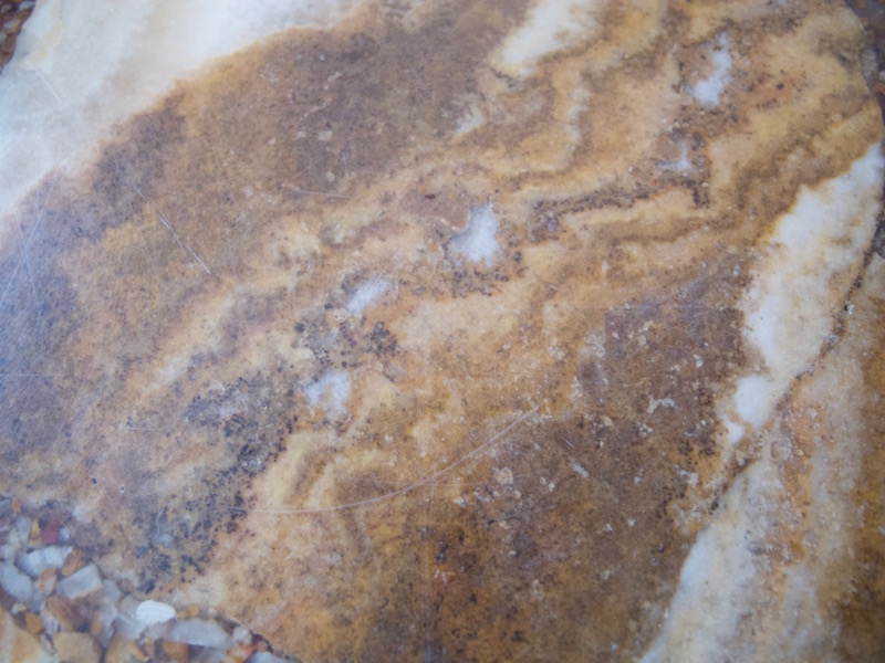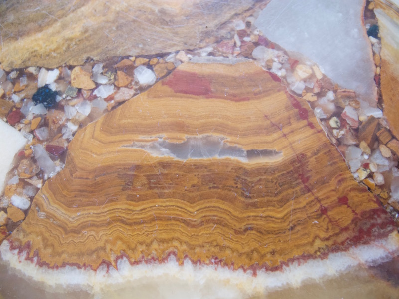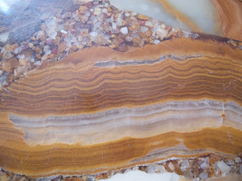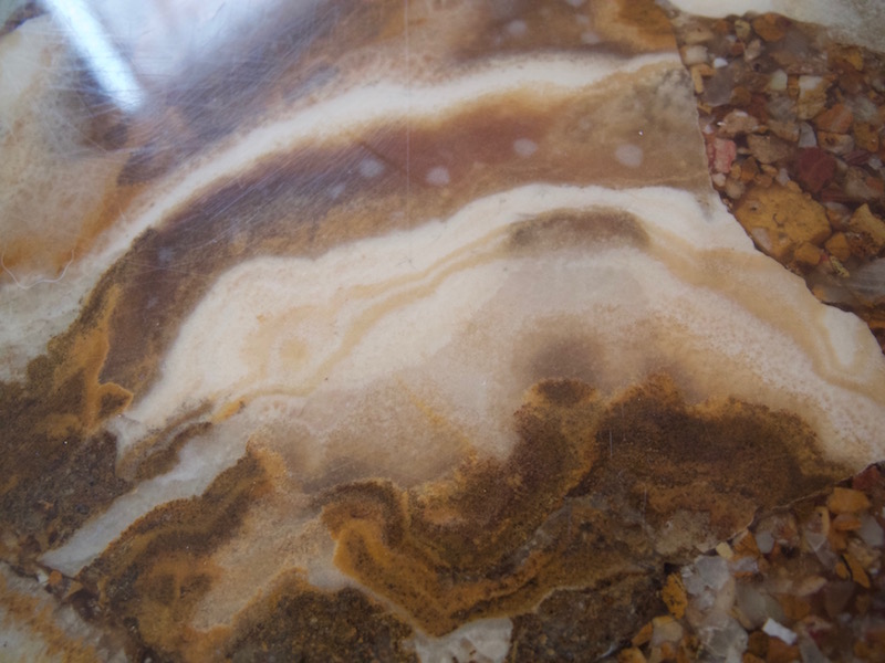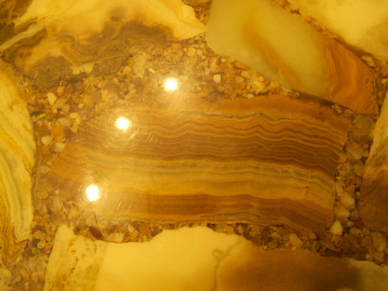 zusammengesetzter onyx marmor, sieht man auch an den zwischenräumen die mit winzigen steinchen aufgefüllt sind. ich habe eine kugel aus onyx marmor, die ähnliche farben und muster aufweist.