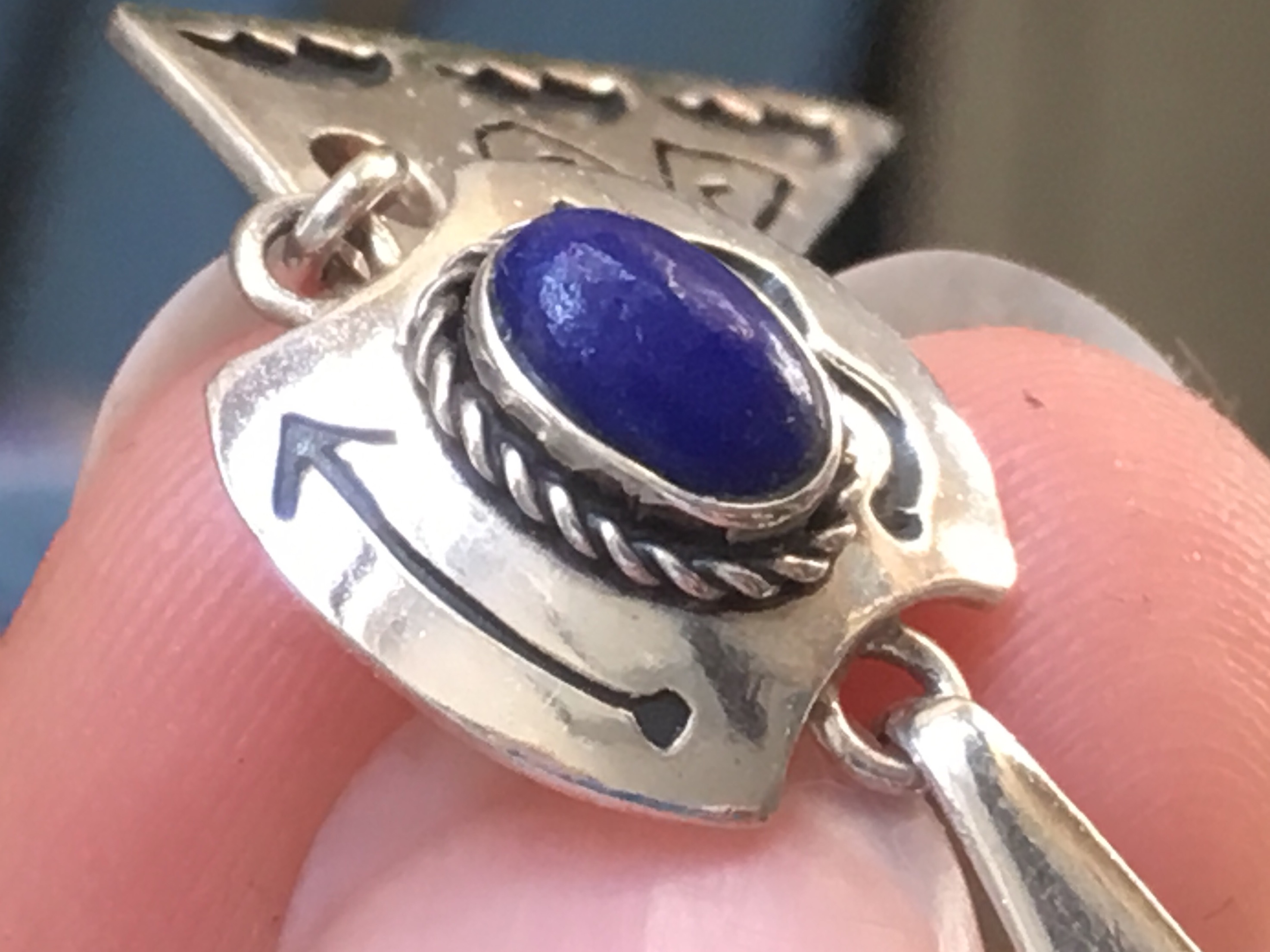 Ich habe nochmal ein paar Fotos aus einem anderen Blickwinkel gemacht, allerdings ist er halt einfach blau. Ich weiß auch nicht, ob das ein echter Stein ist - aber ein Imitat in Silber eingearbeitet käme mir schon merkwürdig vor.