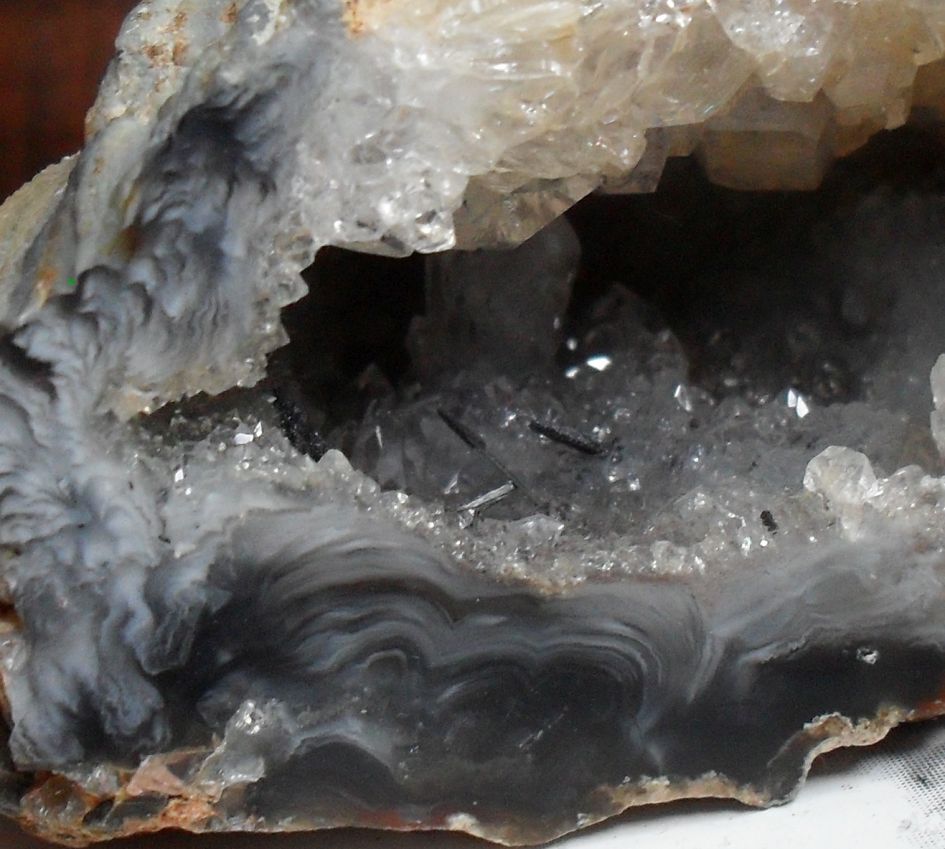 Hier malwieder was aus meiner Schatzkammer..... Diese schöne Geode ist heute zu mir gekommen. Sie hat in ihrem Bauch ein paar sehr feine, dunkle Nadeln.