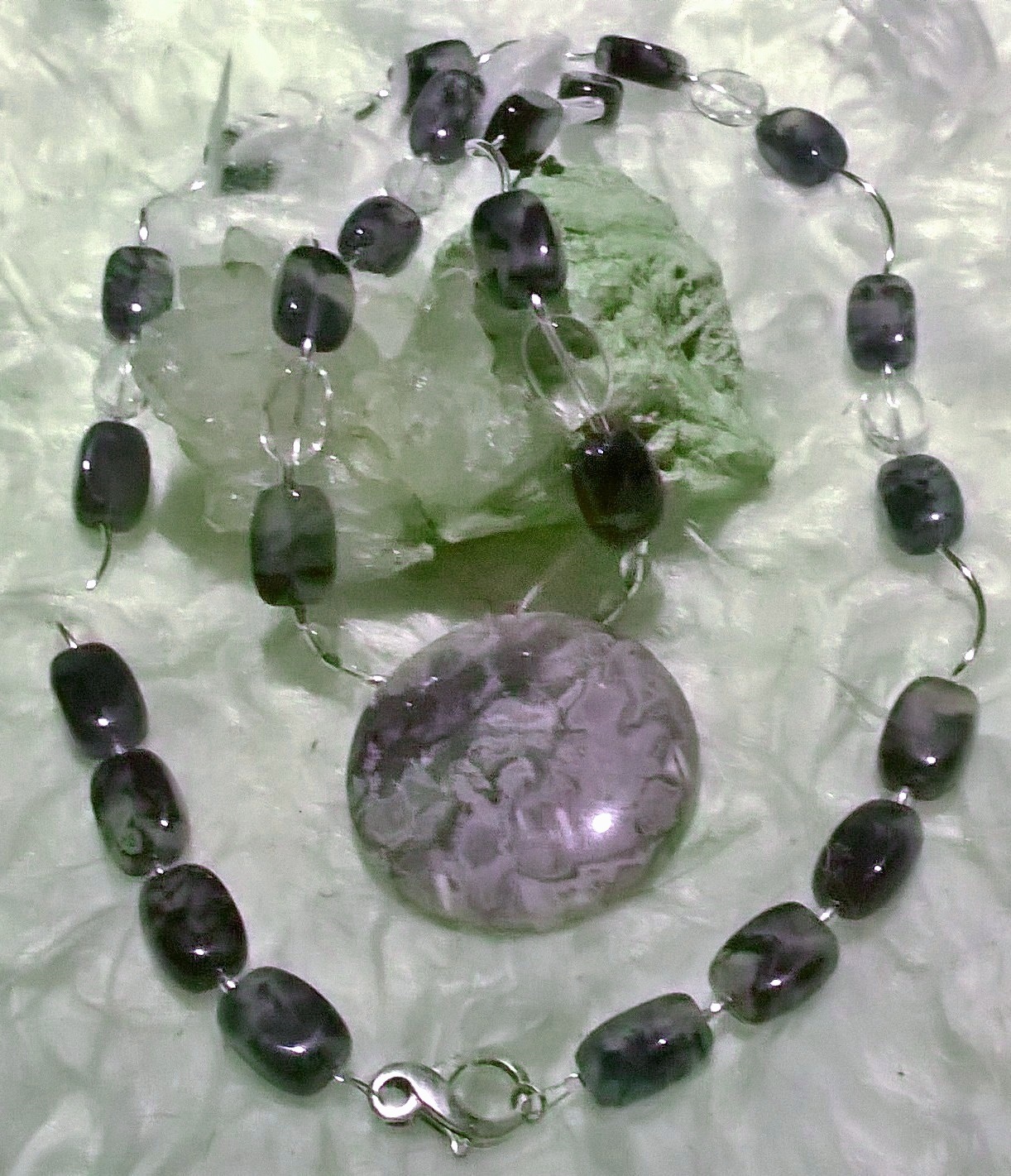 Leider kommt das Grüne der Moosachatperlen/-Anhänger nicht so gut auf den Fotos rüber :-(
