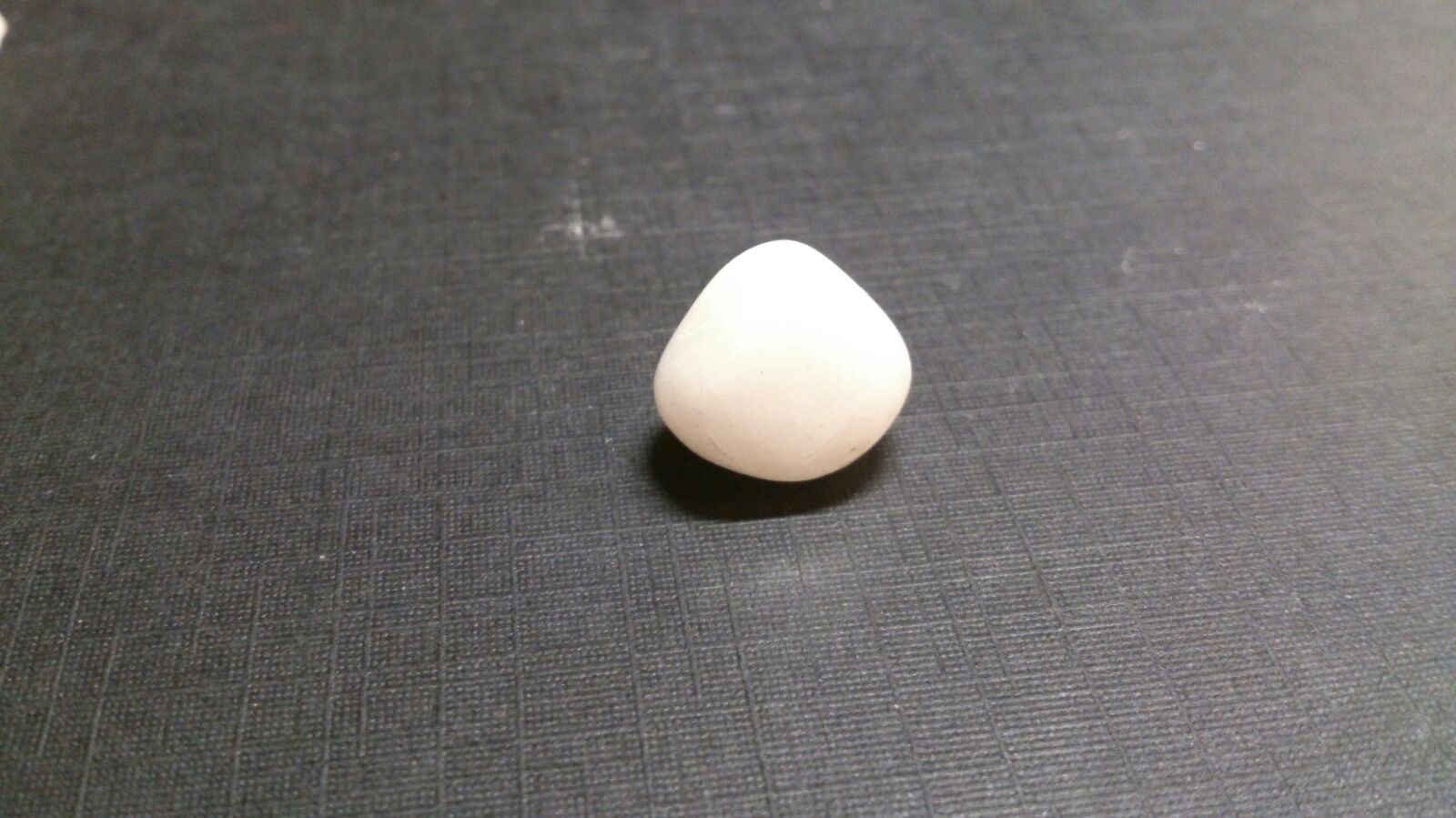 Er glänzt nur sehr stumpf, ist schneeweiß, kaum bis garnicht lichtdurchlässig und hat nur leichte Strukturen.
