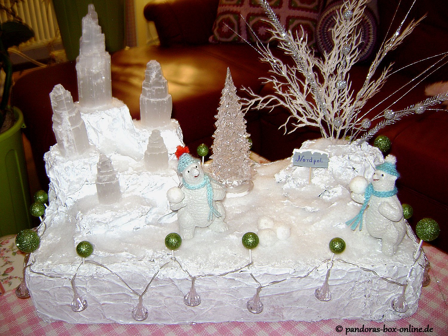 gerade eben habe ich meinen schneeballwerfenden eisbären noch mütze und schal verpasst und da dachte ich, ich zeige euch mal, dass am nordpol selenit-türme gesichtet wurden.