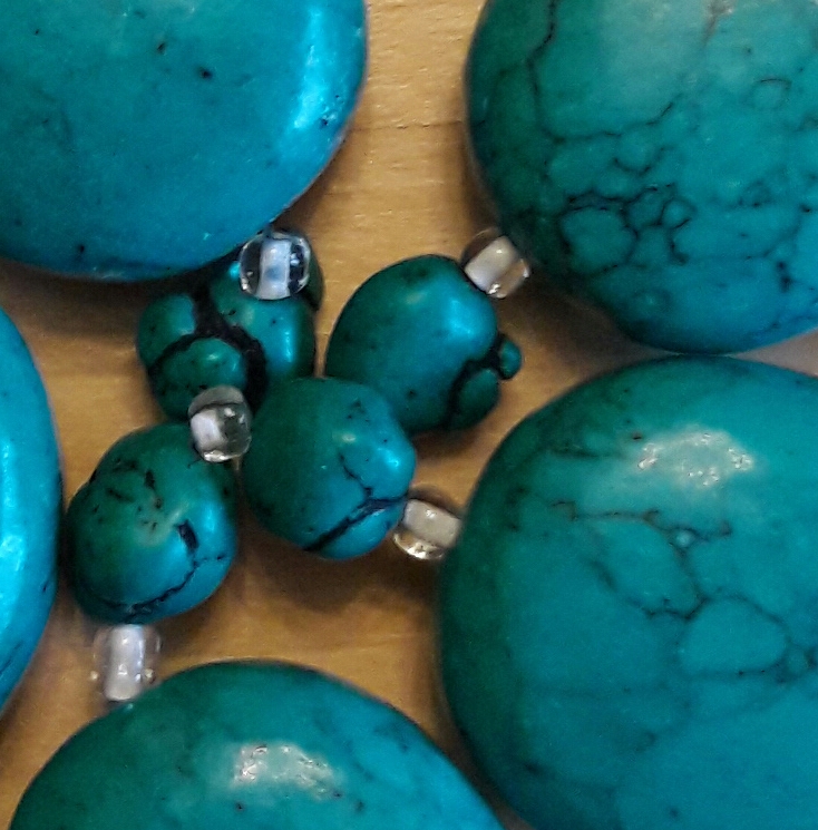 Hier mal zum Vergleich zwei Bilder von meiner Türkiskette, die mir eine liebe Freundin aus Tucson zugeschickt hat, die sie von ihrer Großmutter, einer waschechten Indianerin, geschenkt bekam.