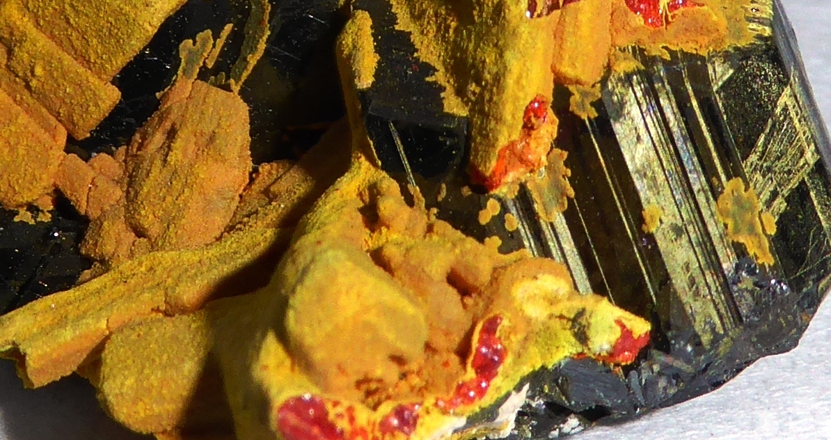endlich eine neue kamera, nu kann ich euch auch diesen Giftling zeigen. Realgar (As4S4) und Auripigment (As2S3) auf Galenit (PbS)