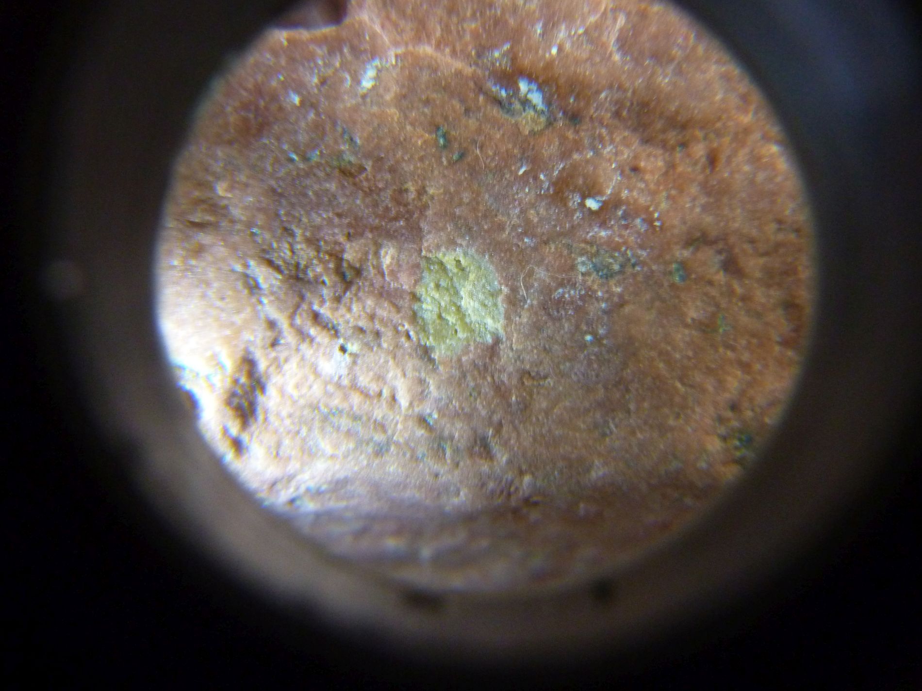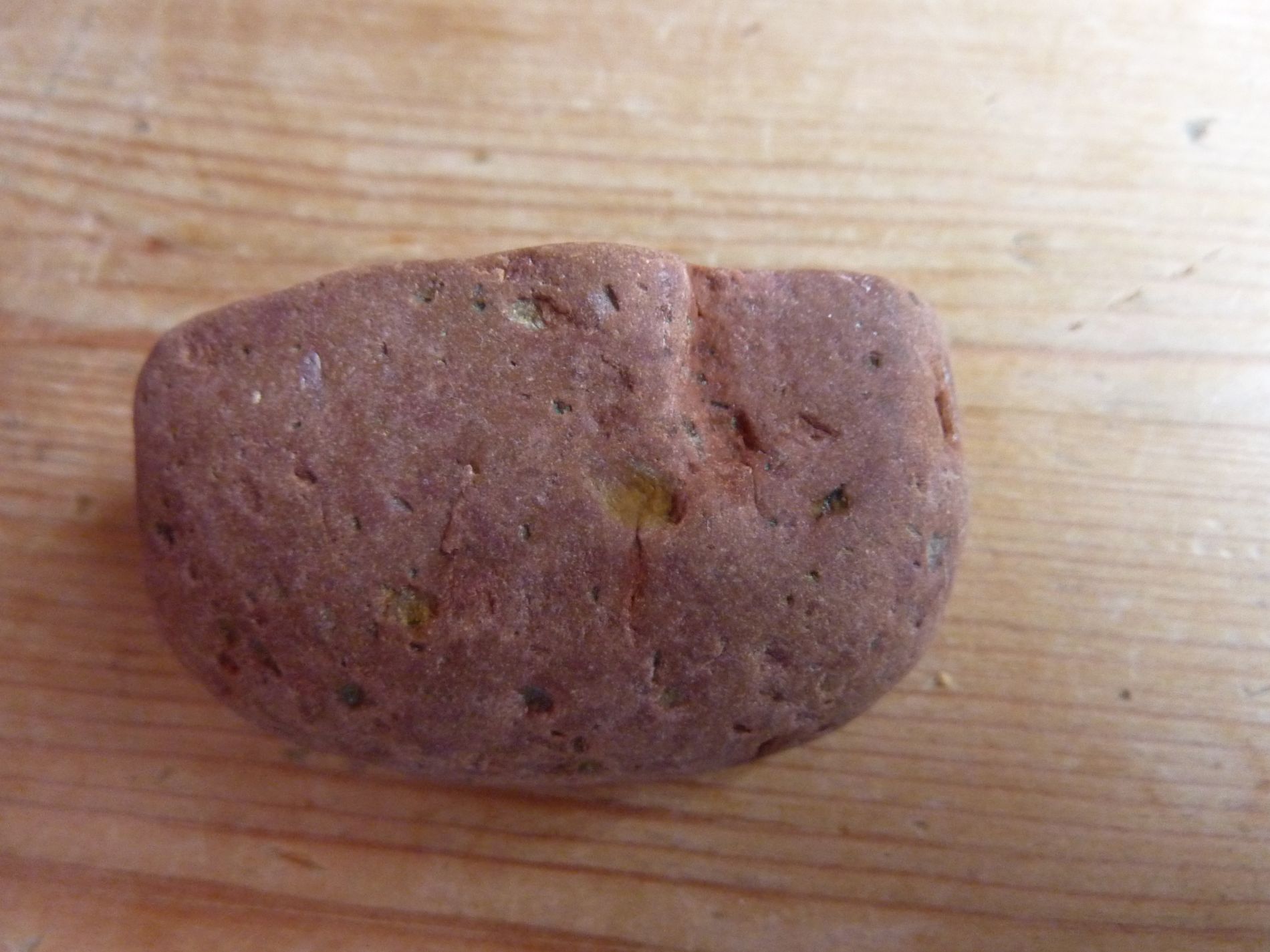 Zuerst dachte ich, das wäre roter Porphyr, doch dann entdeckte ich gelbe Kristalle - Plagioclas (oder wie das geschrieben wird