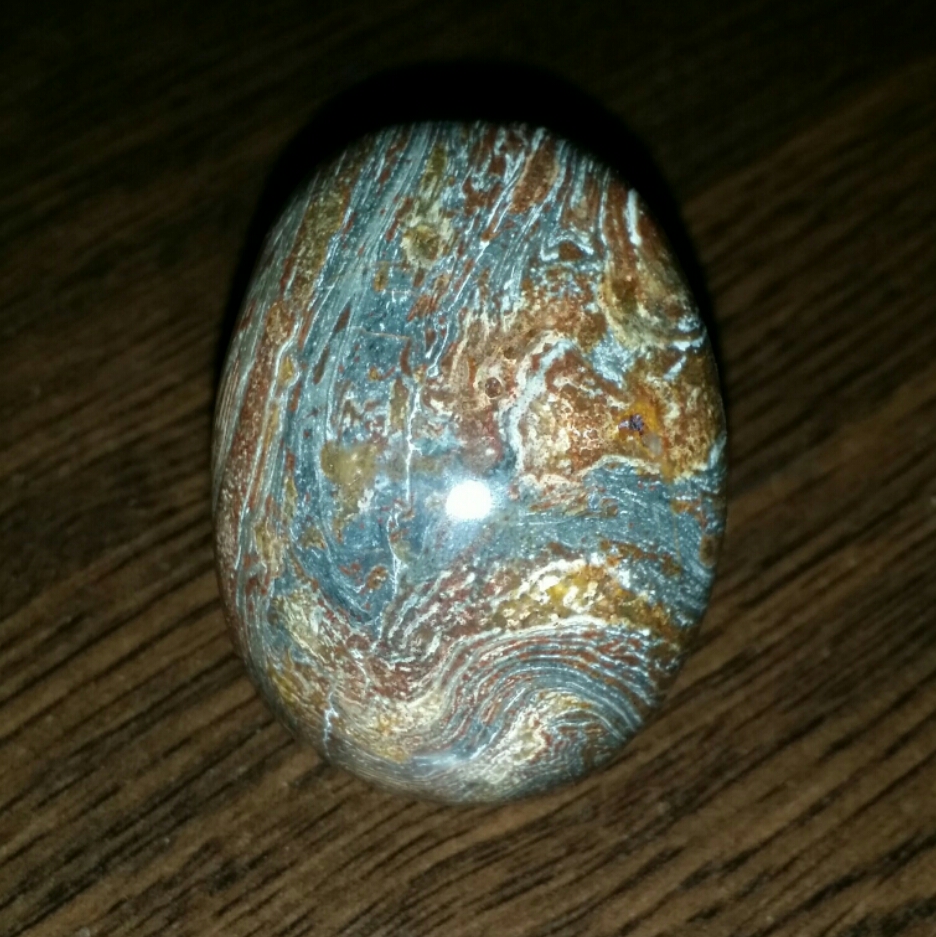 es gibt neben dem richtig violetten Lepidolith, schon in Richtung rosa, mit Schuppen und Glimmer auch so einen eher blauen, glatten, der nur ein bisschen glimmert. Ich denke daher auch, dass es einer sein könnte.