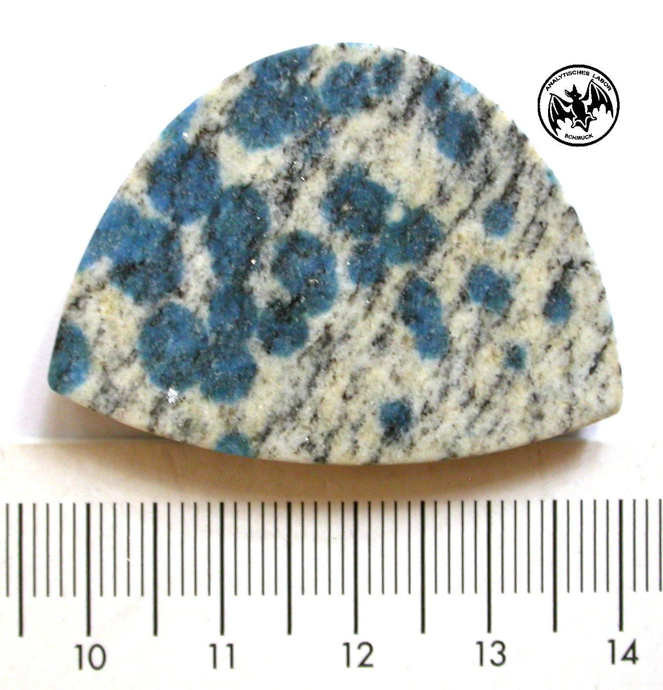 Auch von diesem Stück behauptet mein (seriöser) Scheibenschneider, dass er das Material aus einer Quelle in Pakistan/K2 bekommen habe. Bemerkenswert ist, dass diese Flecken nicht nur fast kreisrund sind, sondern auch kugelrund, was für mich jetzt auch eher als natürlich erscheint.