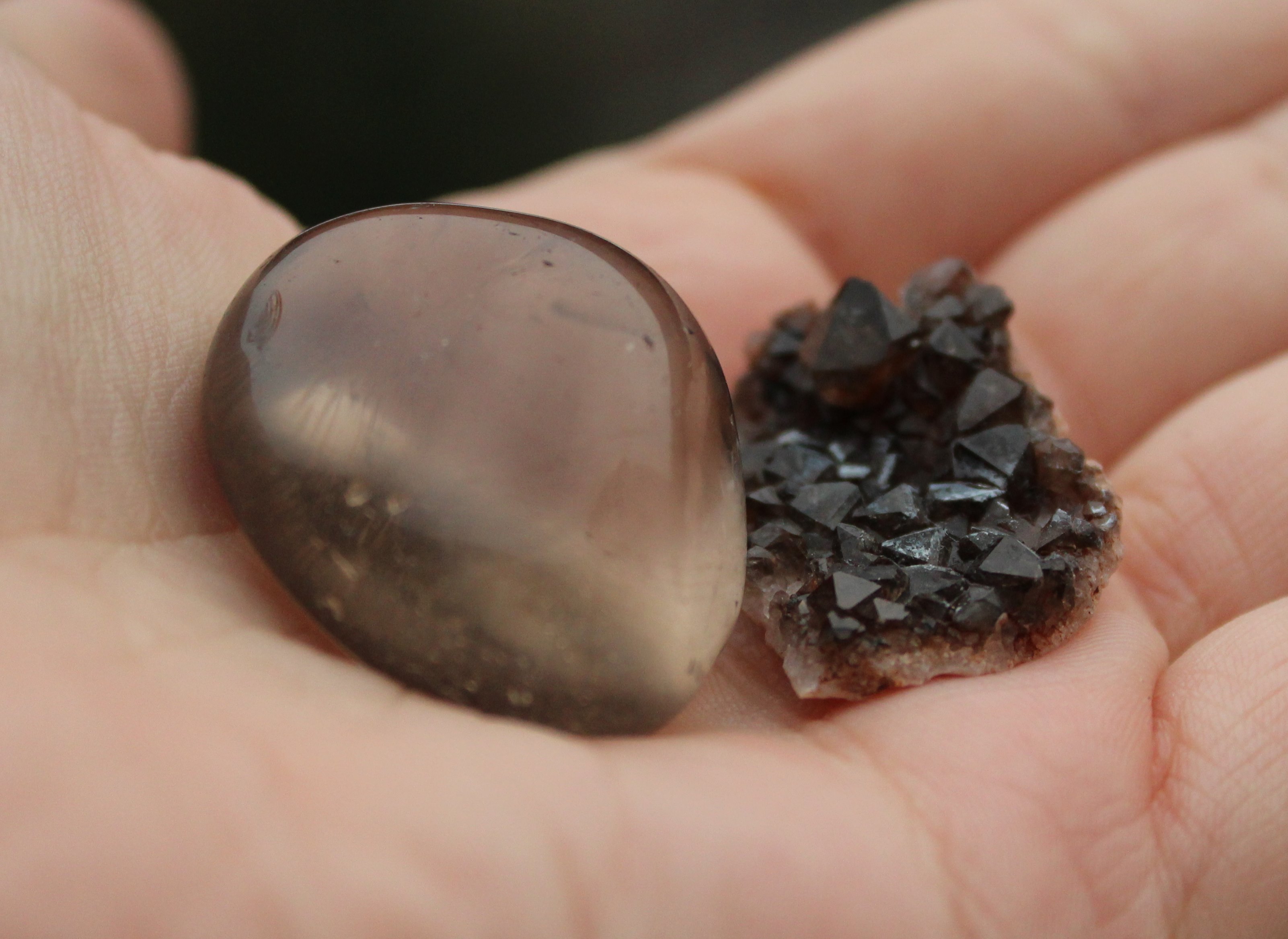 Und hier sind zwei meiner ganz besonderen Lieblinge: meine beiden Rauchquarze.