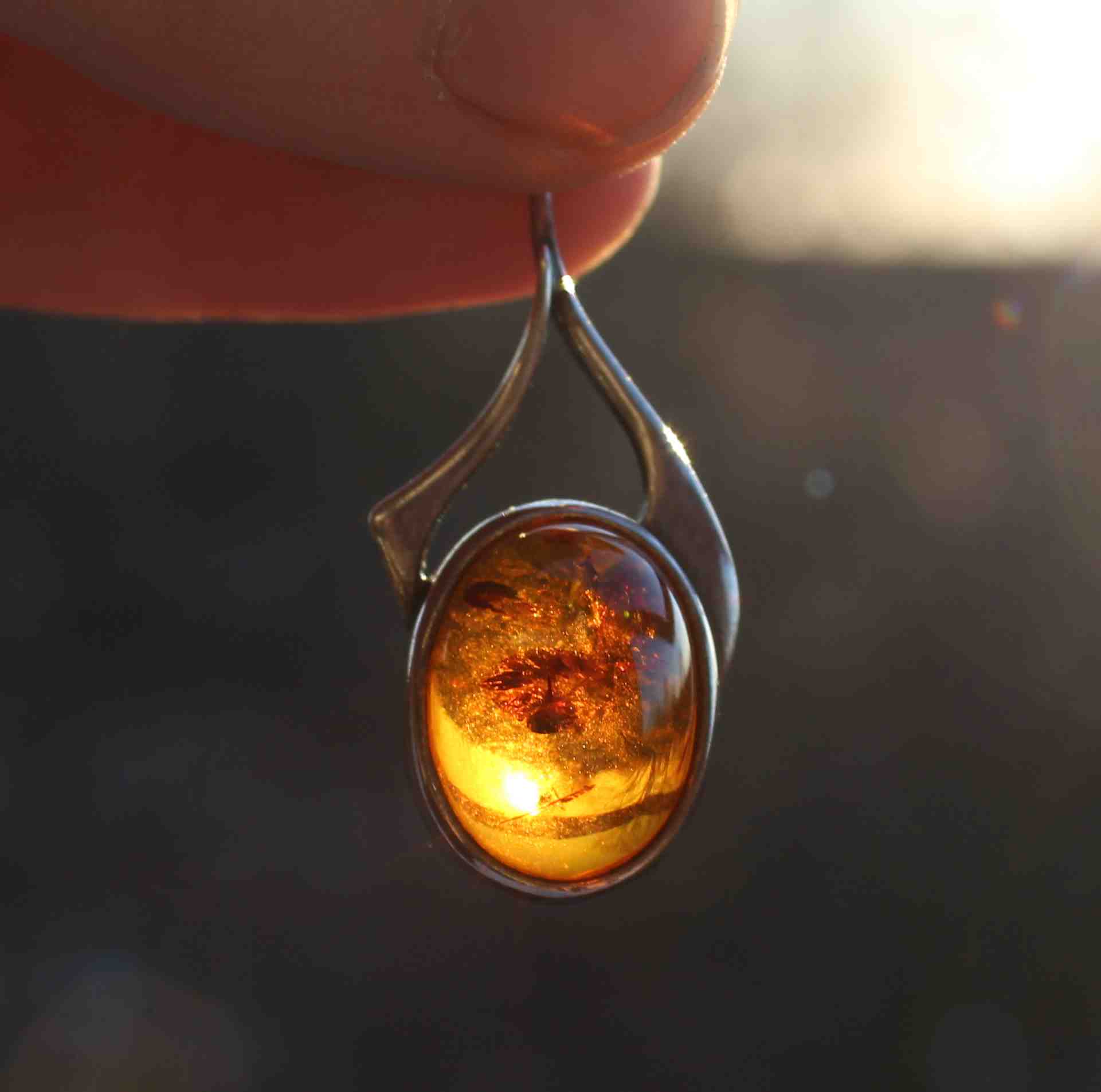 Bernsteinanhänger gegens Licht