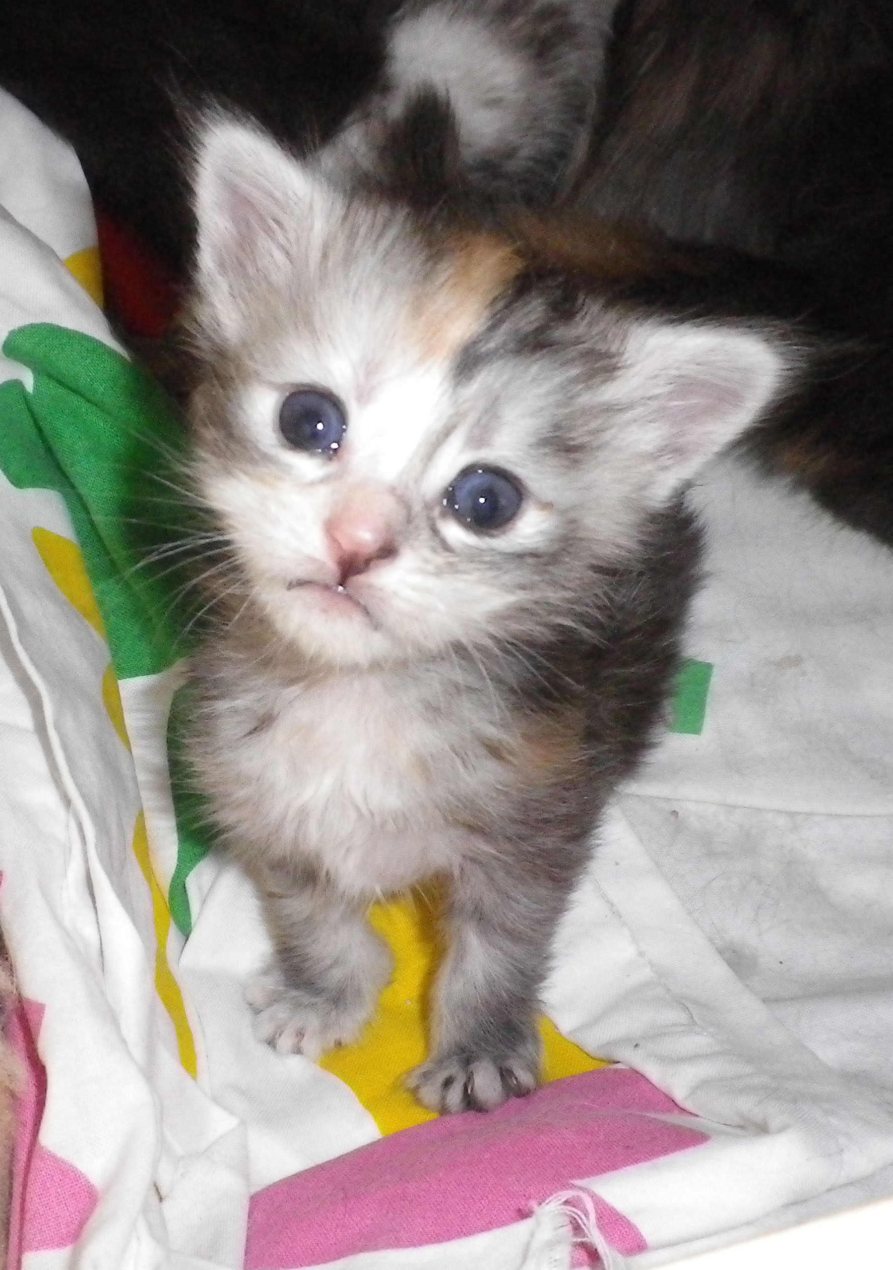 Katzenfisch ist eine Calico-farbene Halbkartäuser, was man aber überhaupt nicht sieht (Papa war Karthäuser, Mama war eine Tiger-Schildpatt Hauskatze). Pata ist eine blau-mehr-oder-weniger-getigert/getupfte Hauskatze die ein wenig wie Karthäuser aussieht (....). Da wissen wir aber nicht wer die Eltern sind, da er aus dem Tierheim kommt.