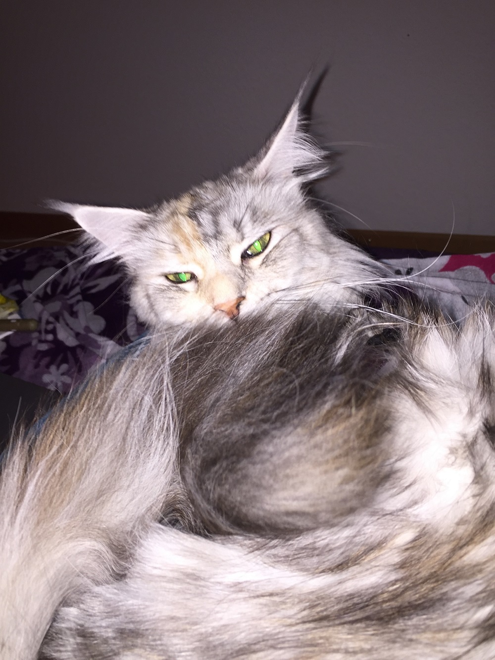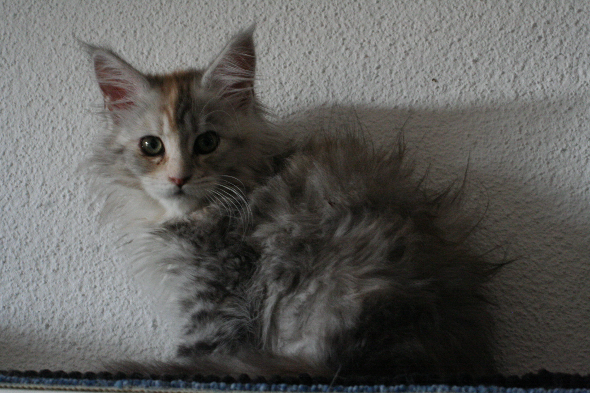 Im Frühling 2015 hatte ich eine Gedanke, es ging um ein Katzen Mädchen am Liebsten vom Bauernhof in der Farbe schwaz/weiß. Schon in meinen Träumen habe ich sie gesehen. Meine Gedanken habe ich dann meinem Freund erzählt und er war gleich infiziert. Nun wie auch Männer sind, hat er dies auch einer gute Freundin erzählt, deren Mutter eine Maincoon Züchterin ist (so jetzt kennt Ihr die Rasse). Ich sagte dann zu meinem Freund: Amore das sind Langhaarkatzen die Haaren genau soviel wie die zwei die wir schon haben dass gibt noch mehr Arbeit. Er meinte dann, schauen kostet ja nichts. Ja genau dachte ich :lol: , der verliebt sie in die kleine Katze wie der Blitz. ++"# .