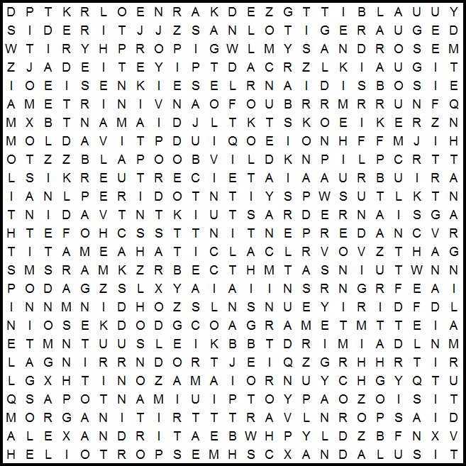 fürs Wochenende eine Denkaufgabe. Ein Wortsuchrätsel mit Begriffen aus der Welt der Heilsteine und Mineralien. Darin ist auch ein Phantasiename versteckt.