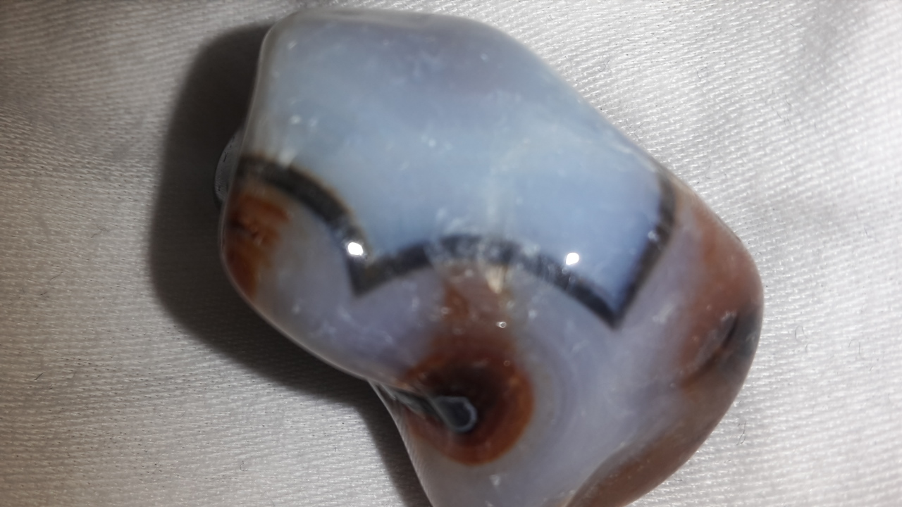 Möglicherweise ein Achat... aber die Farbe erinnert mich an einen blauen gebänderten Chalcedon... ++´´ß