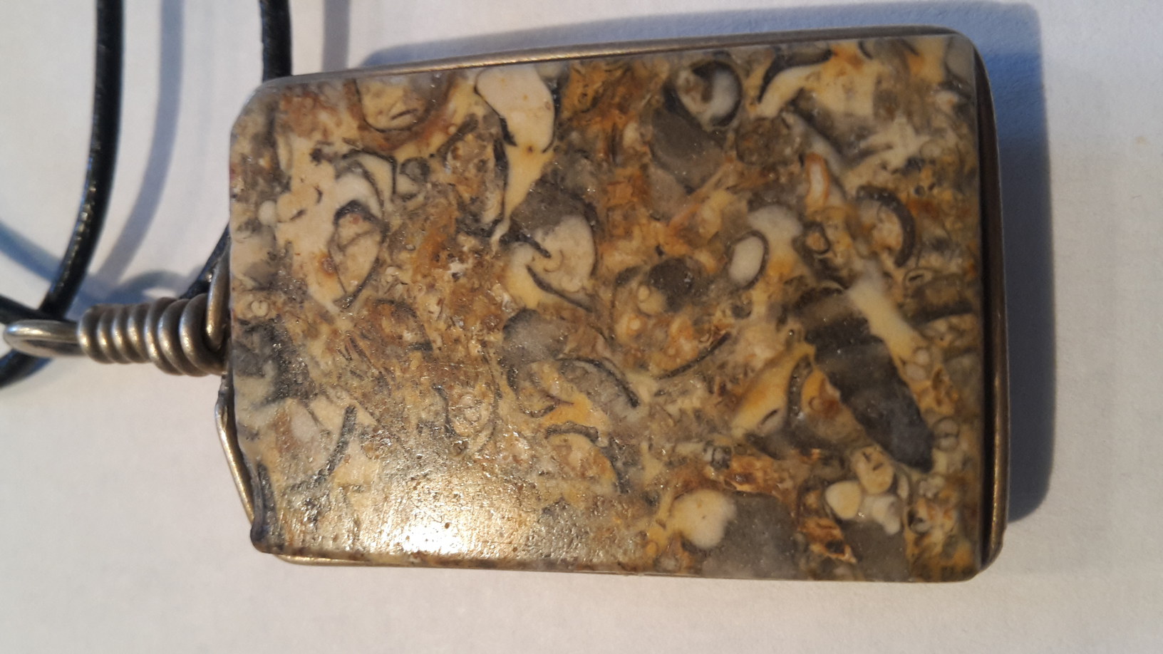 ich habe mir aus Lateinamerika einen Stein mitgebracht, den der dortige Straßenhändler lapidar als "Fossil" bezeichnete. Ich dachte schon, dass es vielleicht gar kein Stein, sondern eine Nachbildung ist, aber das Teil klingt wie ein Stein und ist auch recht hart. (Und die anderen mir bekannten Steine des Händlers waren auf alle Fälle echt.)