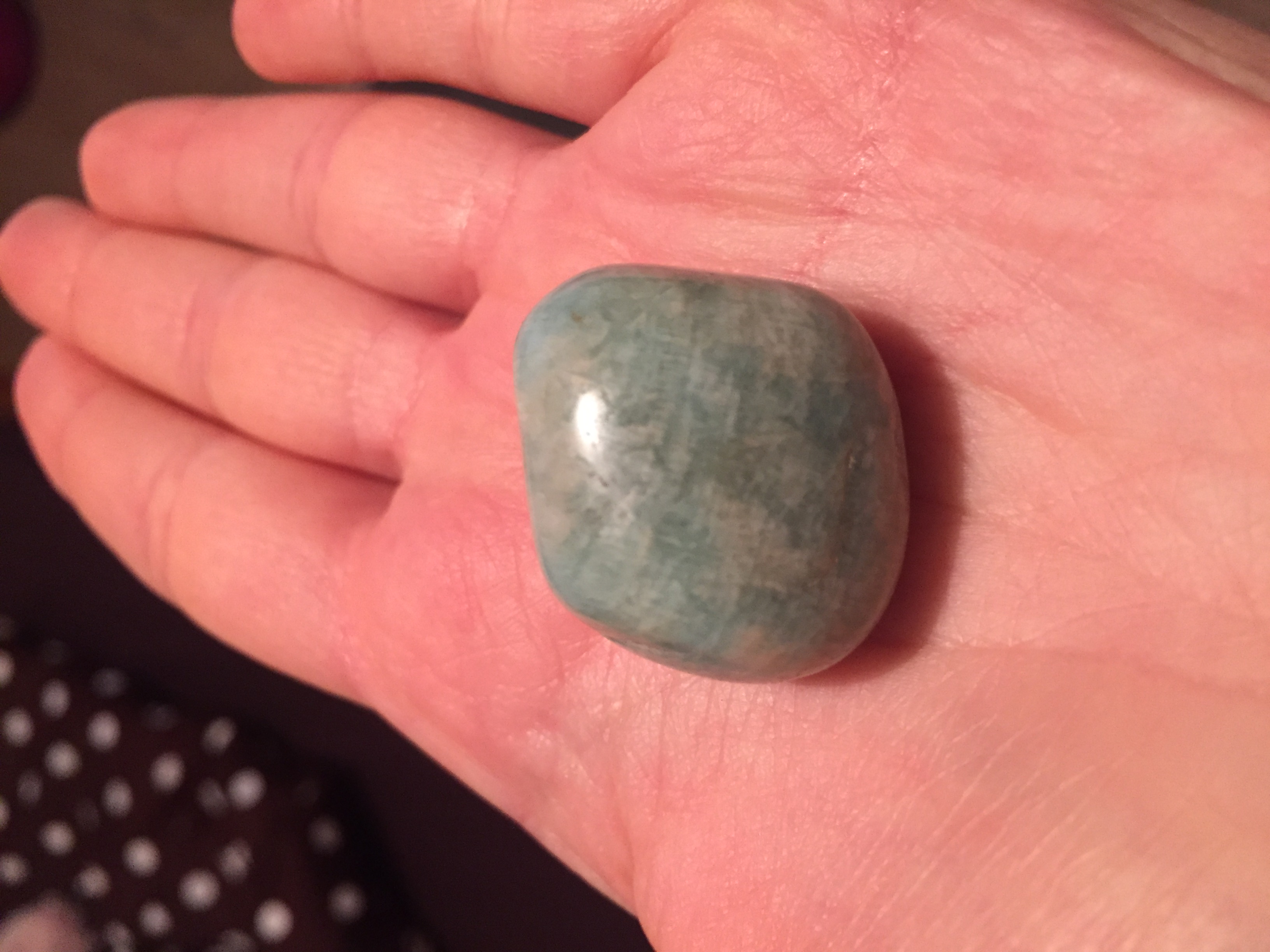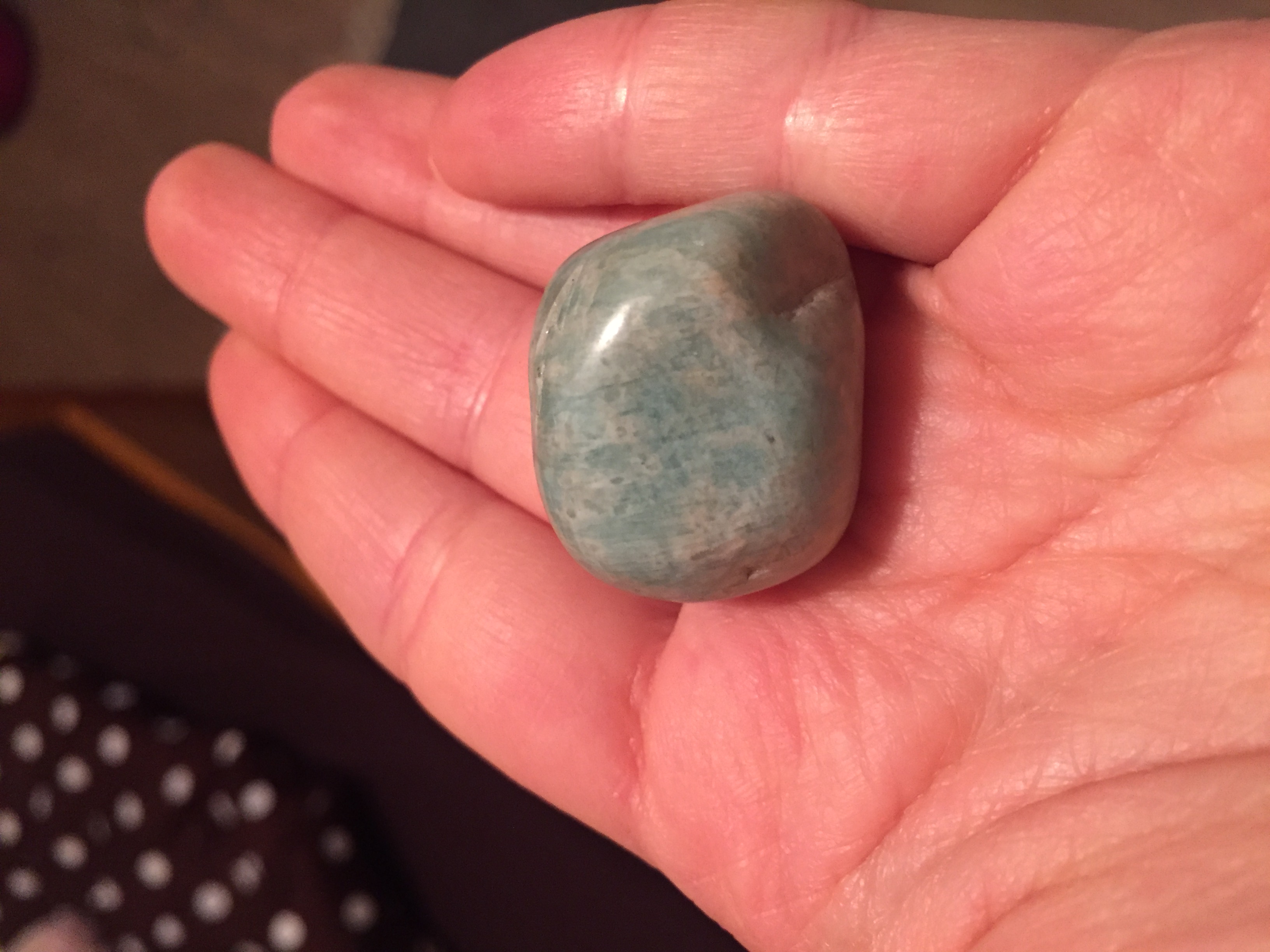Mein erster Tipp wäre Amazonit. Vergleiche doch mal mit AngelWitch's Fotos hier: amazonit-t799.html In dem Thread bekommst du auch ein paar Informationen zum Amazonit.
