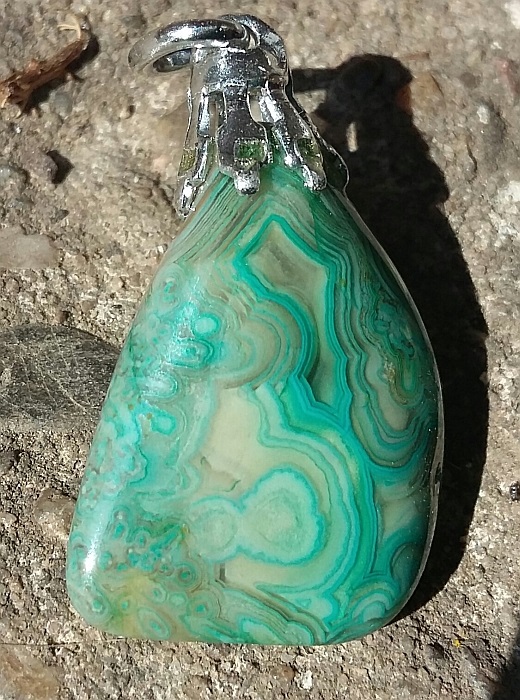 Die Musterung ist natürlich, aber die Farbe nicht. Das ist ein gefärbter Achat.