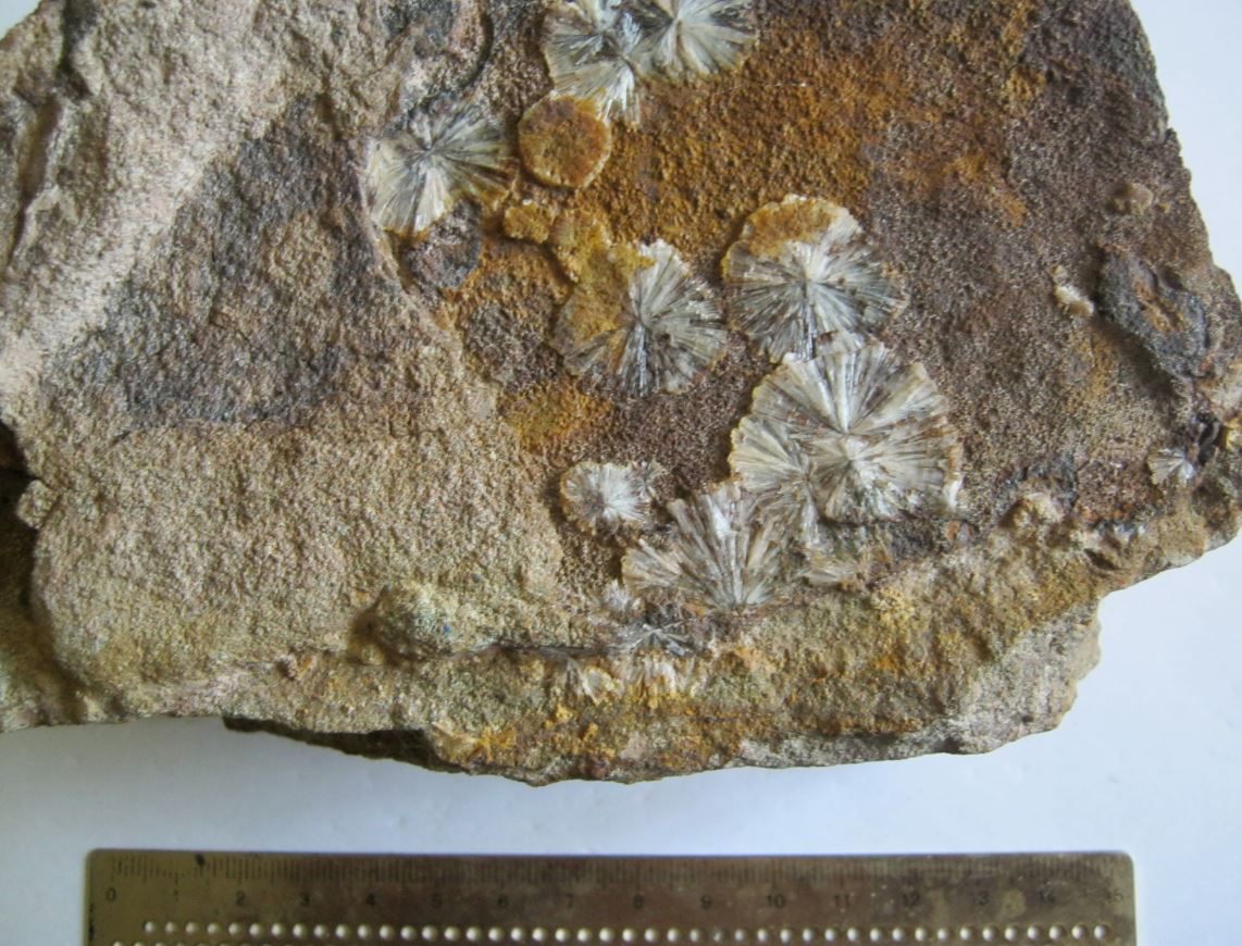 Das ist Wavelit im ordovizen Sandstein von Cerhovice in Böhmen.