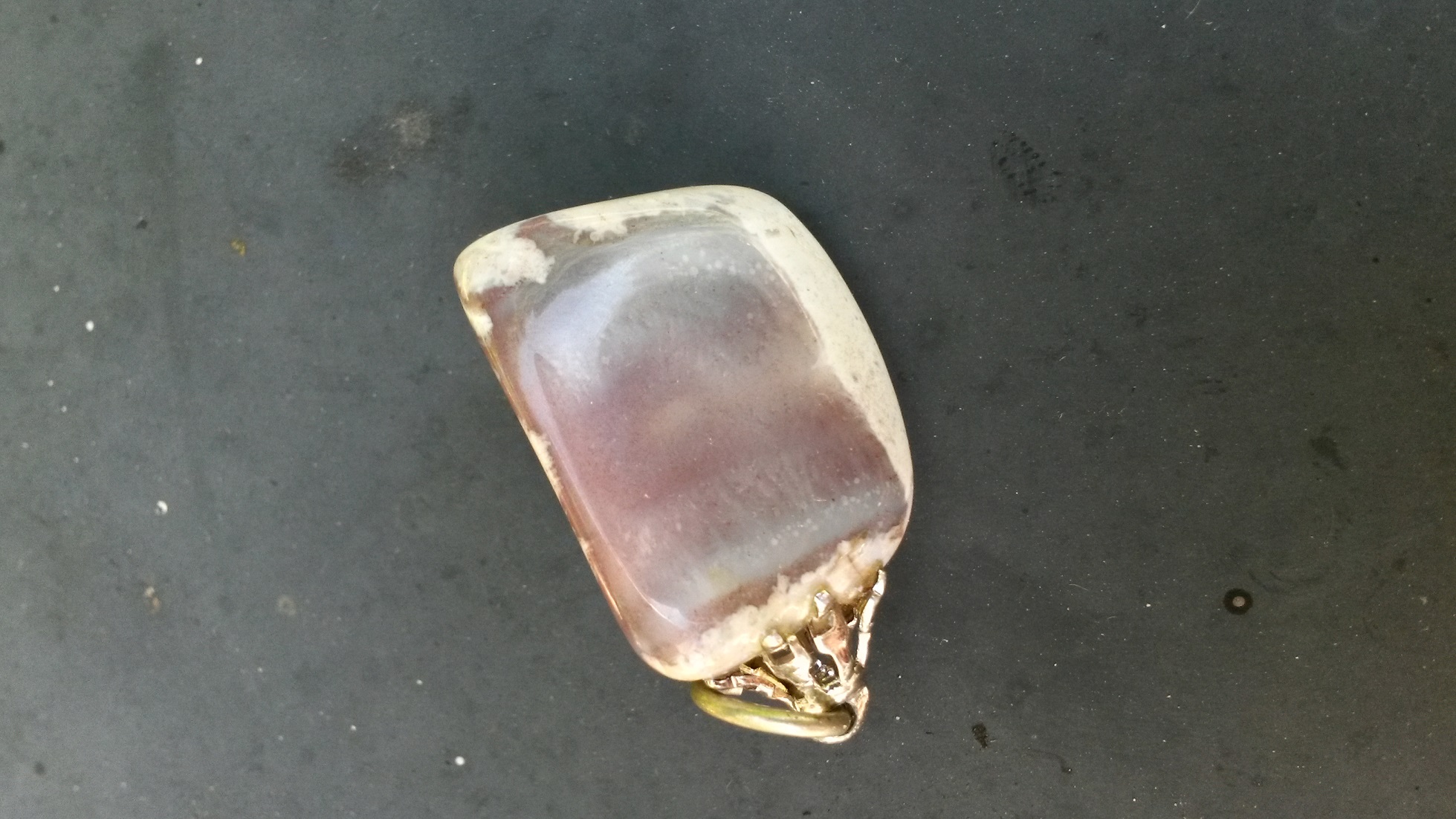 hier ein ganz komischer Stein, an manchen Stellen braun, aber mit nem milchigen Schleiher darüber, und mit weiß.