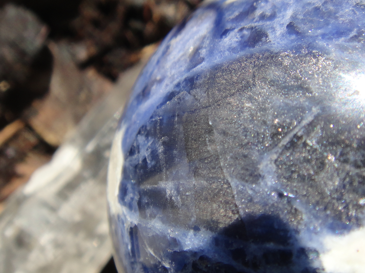 Vor ein paar Tagen kam eine kleine Pyramide aus Sodalith zu mir... Nun habe ich aber festgestellt, dass sie ein silbern-seidiges labradorisieren zeigt.