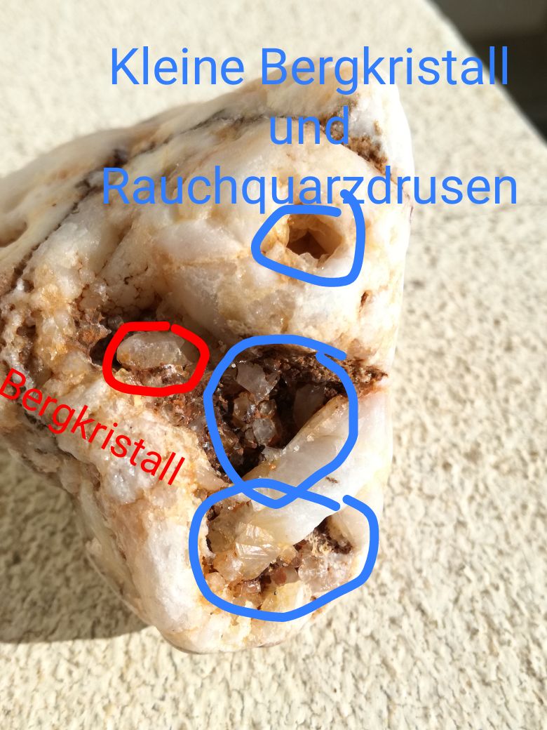 Ich genieße gerade das schöne Wetter in Portugal und habe heute diese drei schönen Quarze mit recht großen Bergkristallen drin gefunden.