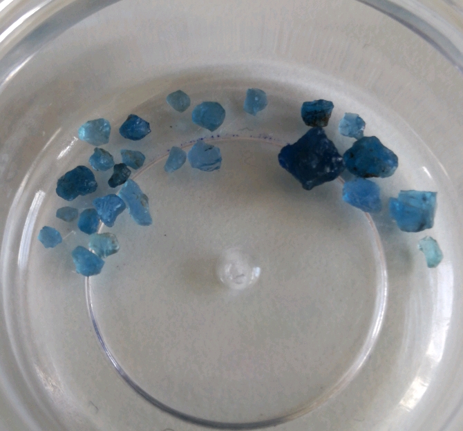 Obwohl dieser wahrscheinlich schon von vielen Sammlern begutachtet wurde fand ich dort noch viele schöne Stufen und lose Steine. Der größte lose ist 0,6x0.4cm groß und auch seine Farbe ist super.