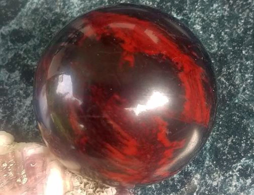 Und das kann rot sein. Hämatit ist ja auch als Rohstein fast immer rot. Deshalb wird er auch oft Bloodstone genannt.