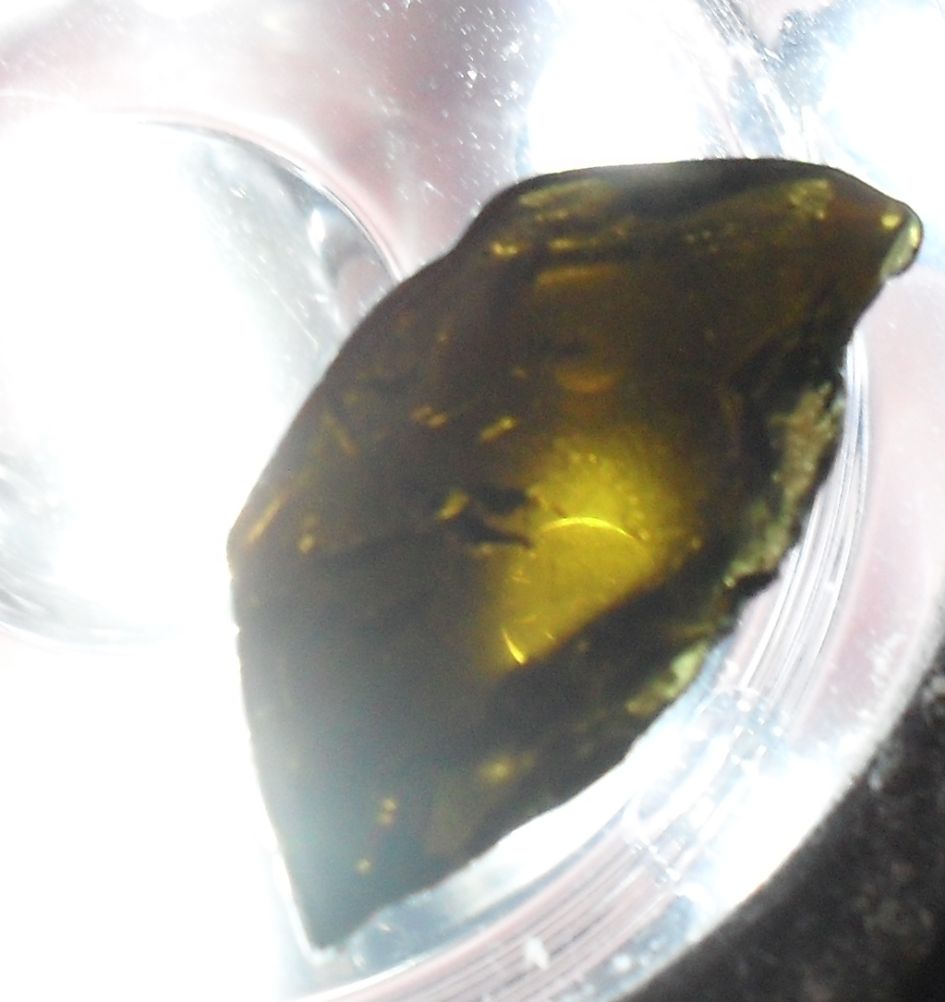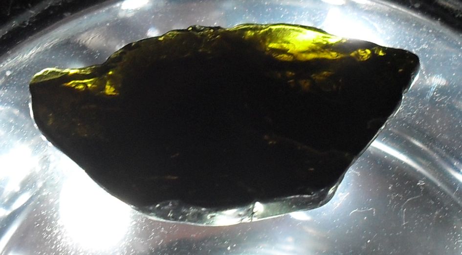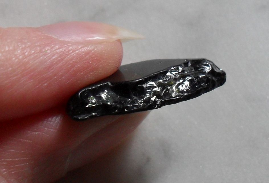 Diese Scheibe sieht im normalen Licht völlig schwarz aus. Zuerst habe ich sie für Onyx oder Obsidian gehalten.