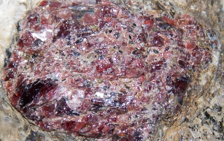 Vielleicht neben der schwarzen Hornblende die ich sehe, noch ein weiteres Amphibol. Oder Granat käme auch noch in Frage.( siehe Hornblende Paragnesen)