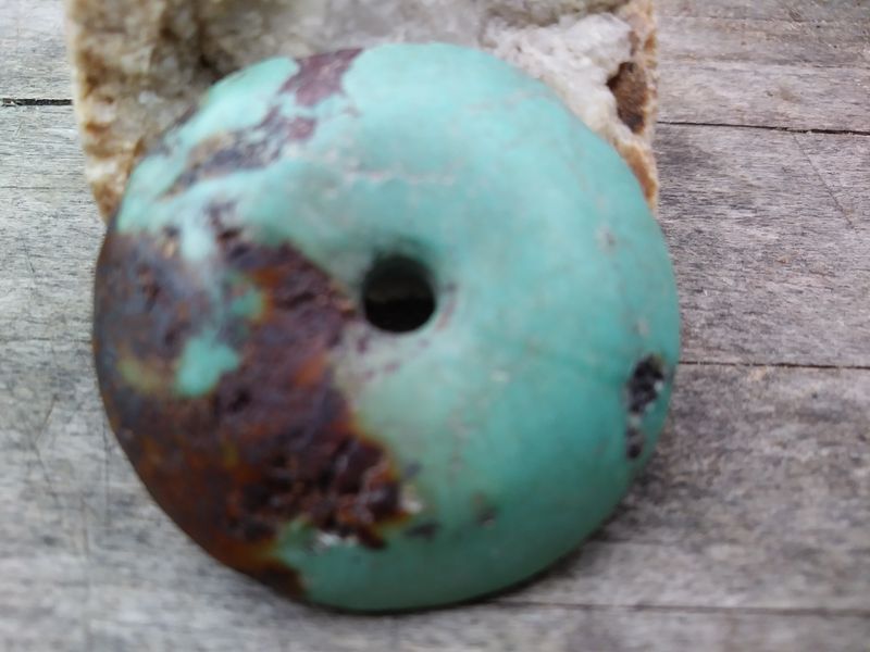 Der Stein kann durch seine Verarbeitung über sich selbst hinaus beeindrucken. Besonders gut harmoniert er mit echtem Silber. Durch das Tragen solch eines besonders verarbeiteten Türkis kann ich die Tradition der alten Völker fühlen, und das ist etwas ganz Besonderes, was einen durch den Tag begleiten kann. Es erhebt die Trägerin oder den Träger und stellt ihn in die Reihe (vielleicht etwas zu anmaßend) dieser alten Traditionen. Zumindest kann man einen Hauch davon erahnen, wenn man sich dessen bewusst ist, wie ich finde. Aber auch als fast unbearbeitete Knolle, z. B. gebohrt getragen an einem schlichten Silberreif am Hals, entfaltet der Türkis seine volle Schönheit und Einzigartigkeit.