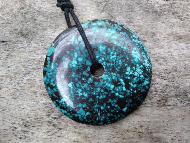 Pflege des Türkis: unter fließendem Wasser abwaschen, entladen mit Hämatit-Ministeinchen oder auf einer Amethystdruse, aufladen in der Morgensonne. Nicht am Strand oder in der Sonne tragen!