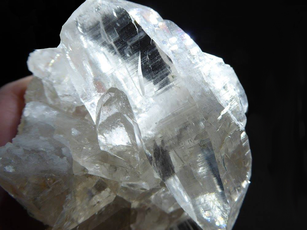 Mutiger, kleiner Quarz mitten unter riesigen Fluoriten.