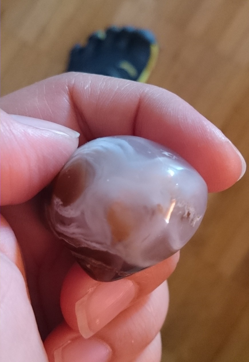 Mittlerweile ist es Mookait und Rosenquarz. Mindestens einer von den beiden ist immer mit dabei.