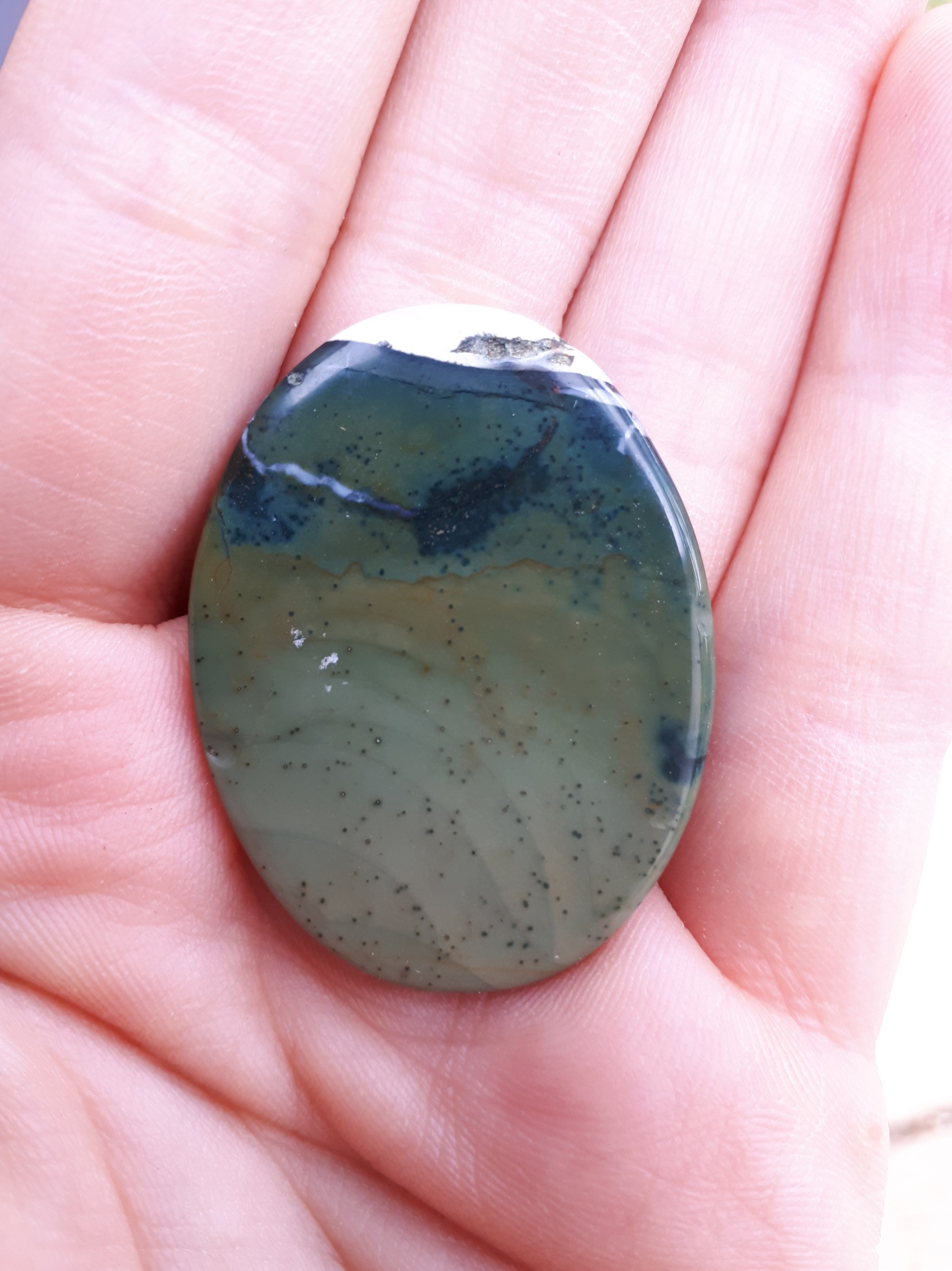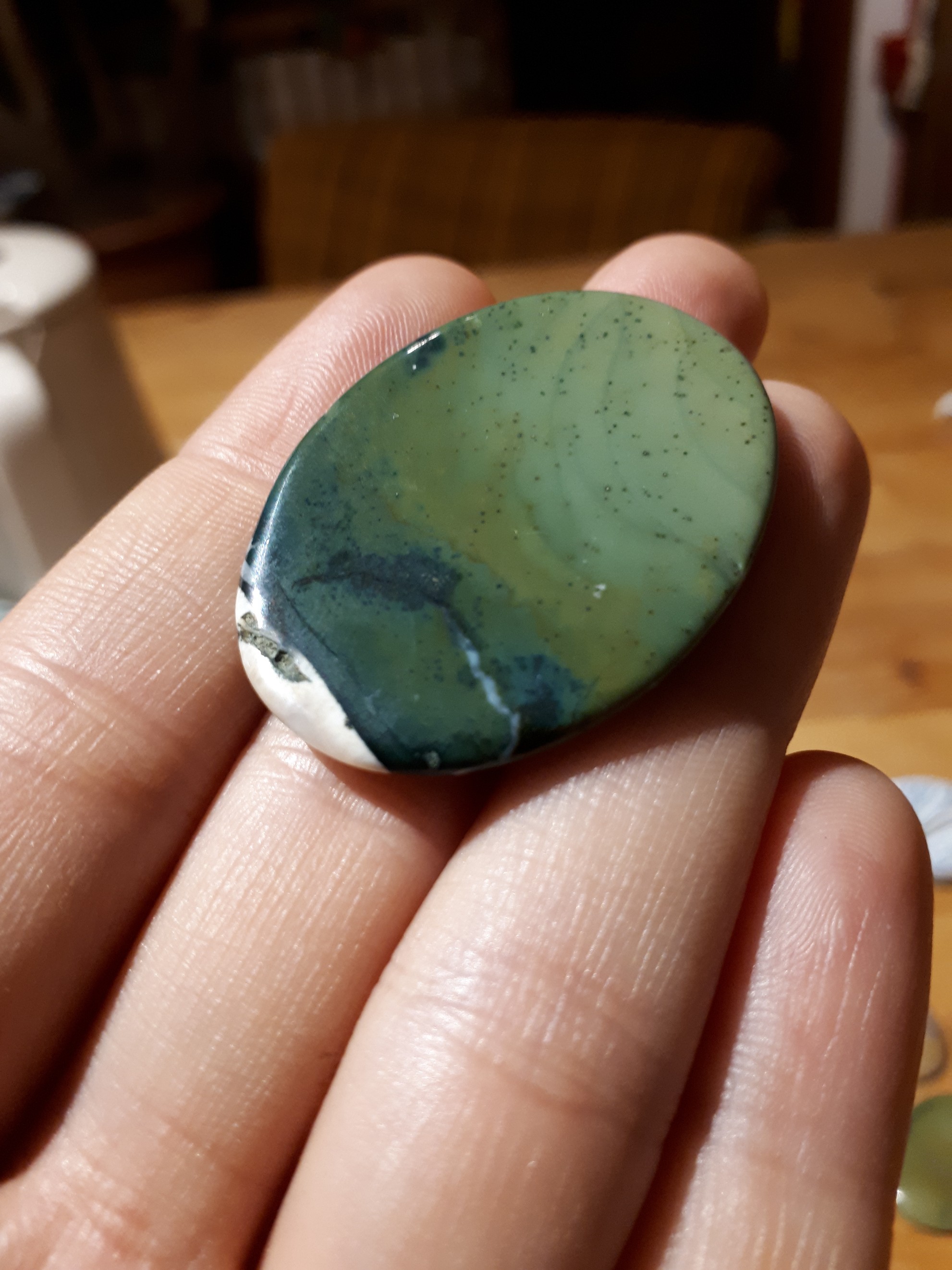 Ich denke, es ist ein Achat, aber frag mich nicht, welcher. Auch kommen mir die Punkte irgendwie bekannt vor......Grübelsmilie.....