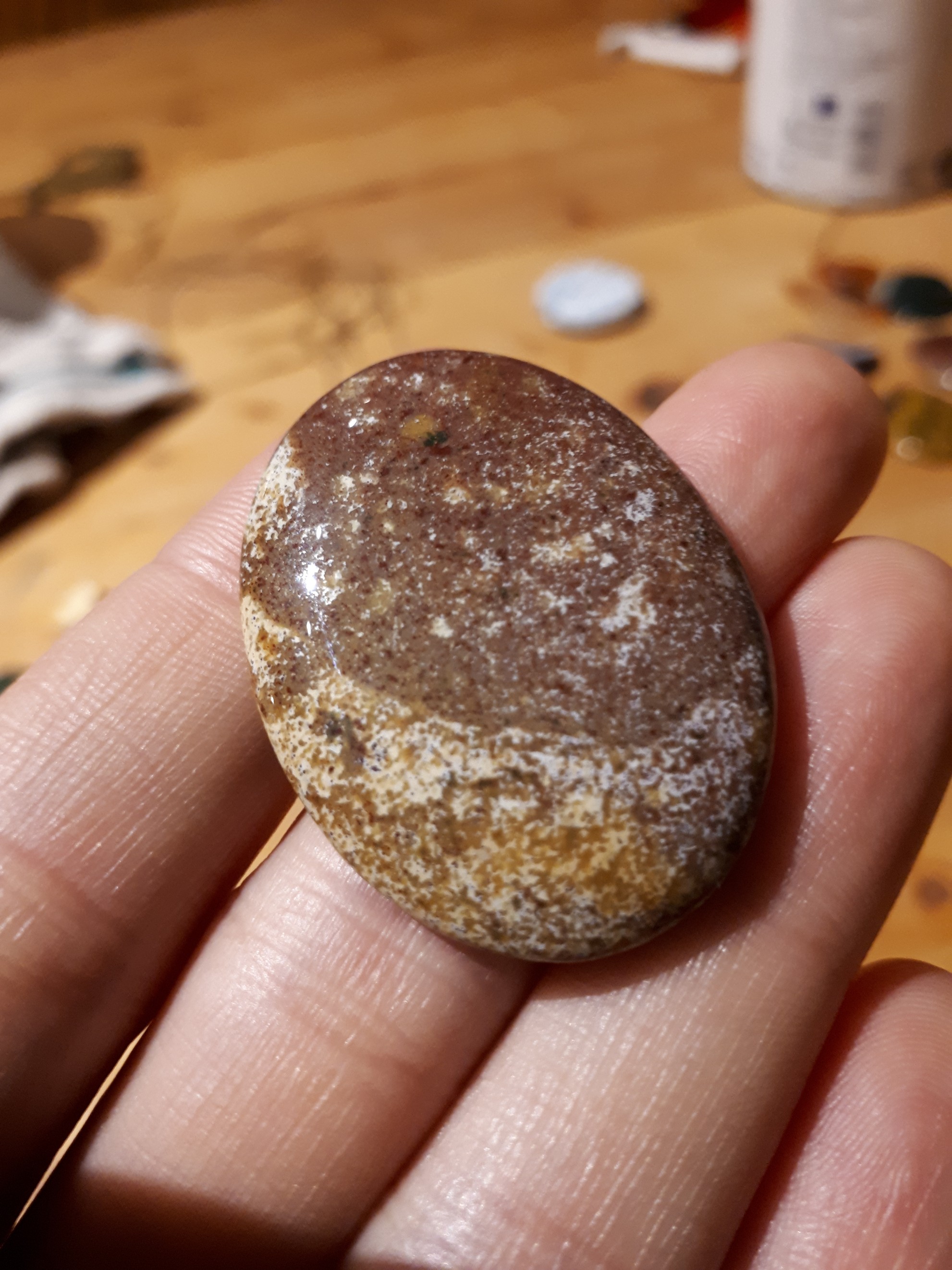 Das ist bei den Ocean jaspissen immer mit drin, ist also aus dem gleichen Rohstein, also immer neben den typischen bekannten Ozeanern. Gibts aber auch aus INdien bei den indischen Achaten dabei.