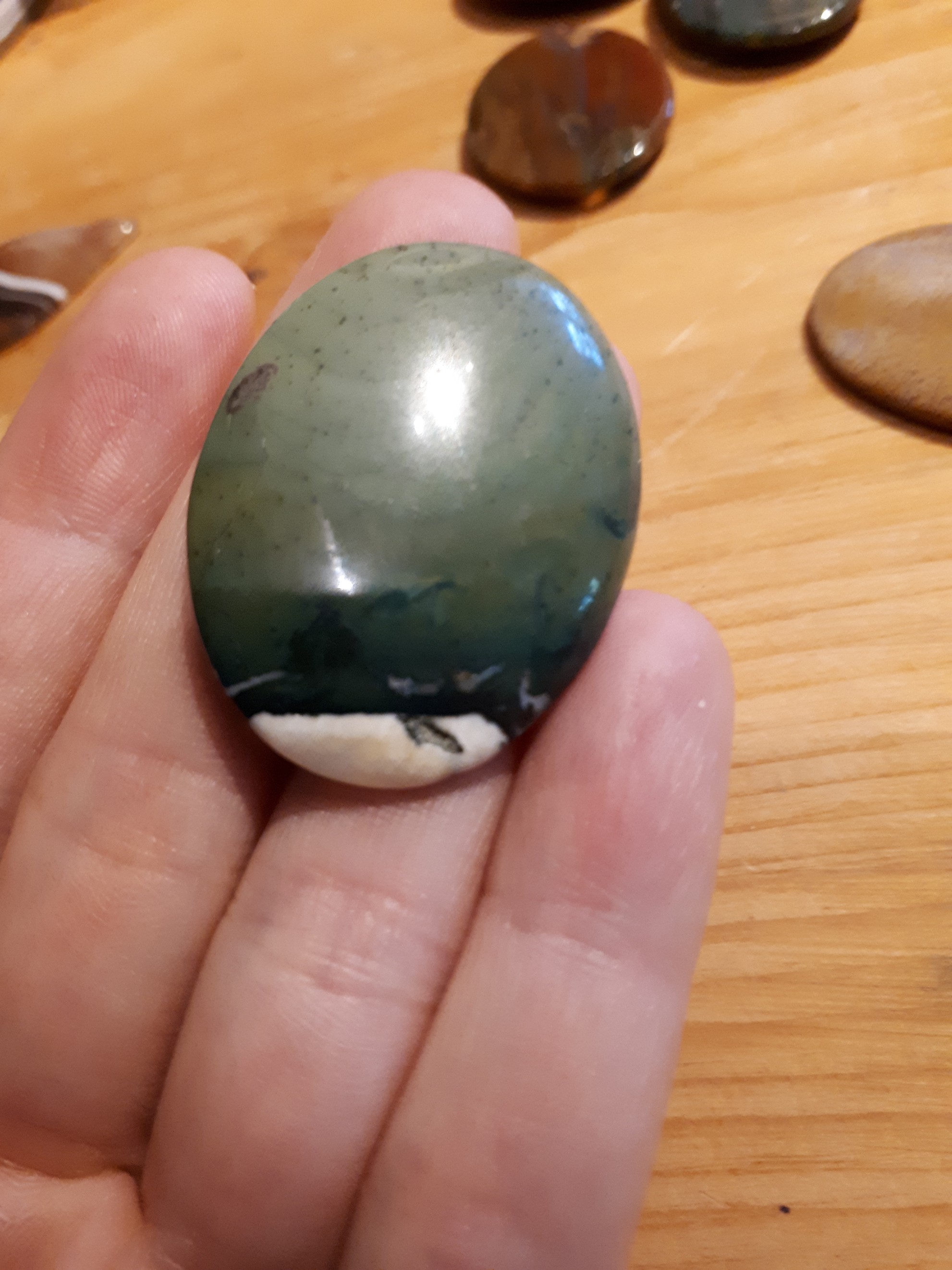 Ich denke, es ist ein Achat, aber frag mich nicht, welcher. Auch kommen mir die Punkte irgendwie bekannt vor......Grübelsmilie.....
