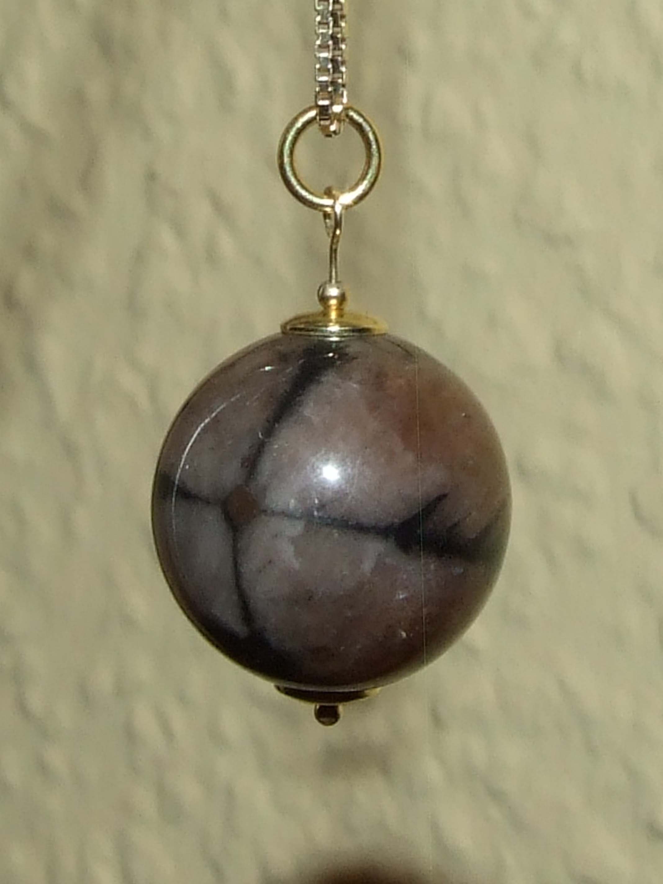 Hier zeige ich euch meine Chiastolith-Kugel, die ich wunderschön finde.