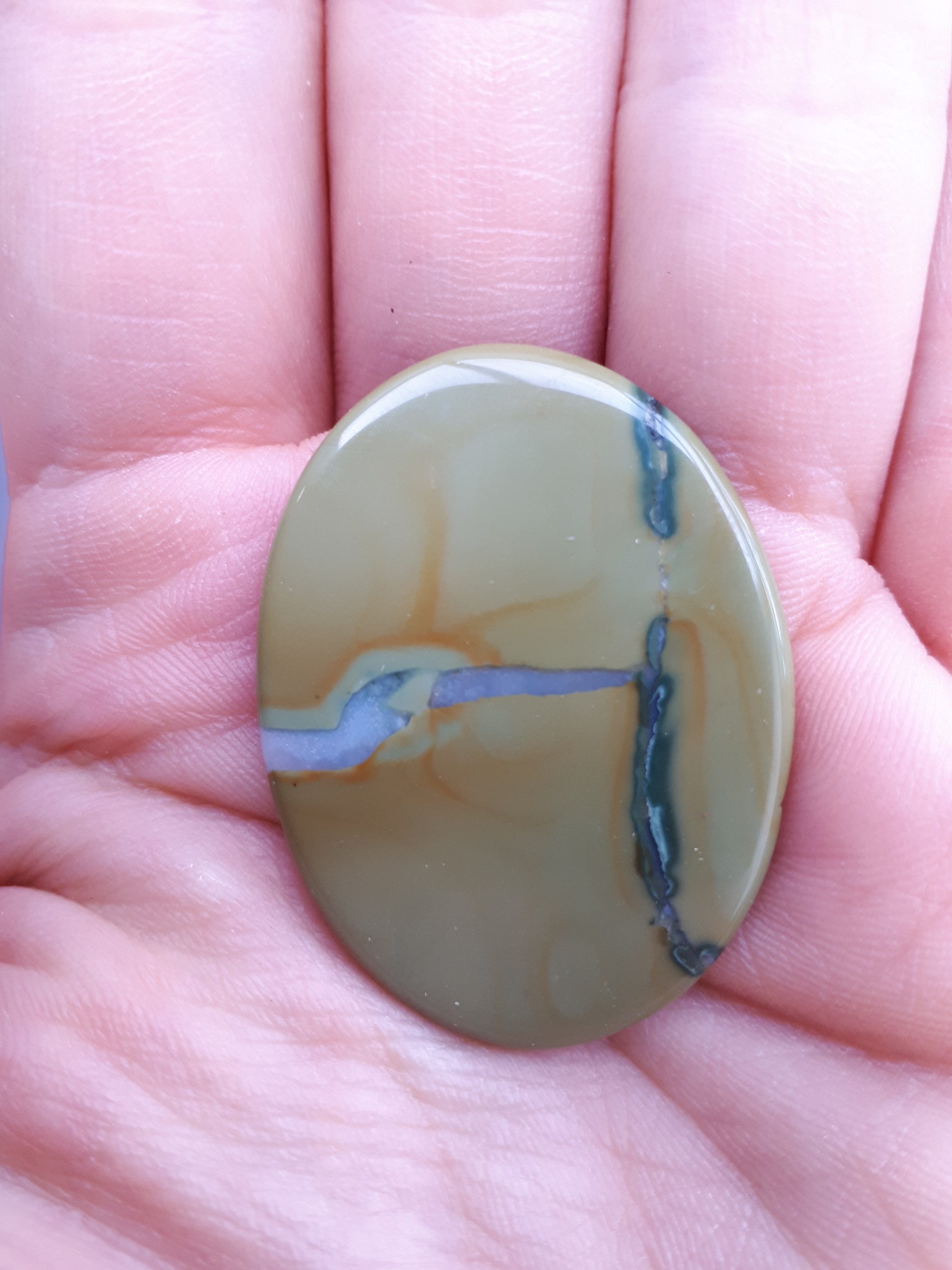 Das erinnert mich an einen gelben Jaspis... Ist die Ader opalisierend? Kann das auf dem Foto nicht sicher erkennen.