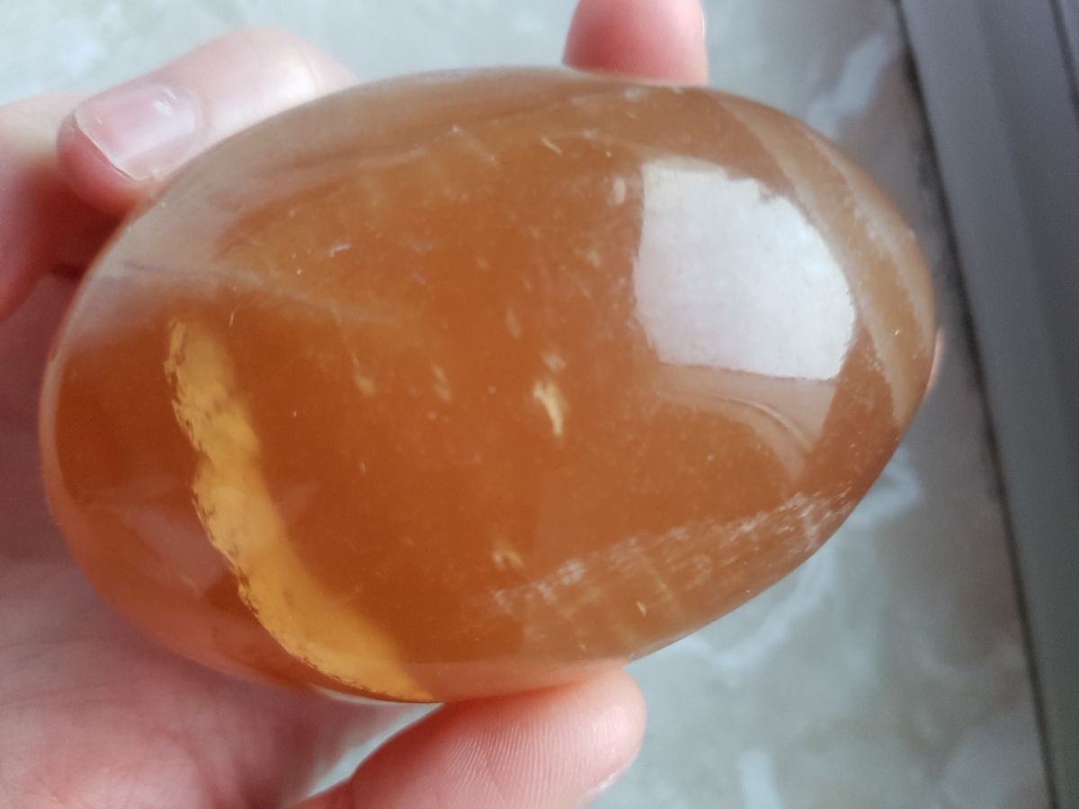 Es könnte aber auch Selenit orange sein. Er hat so ein bischen einen Schimmer, finde ich......