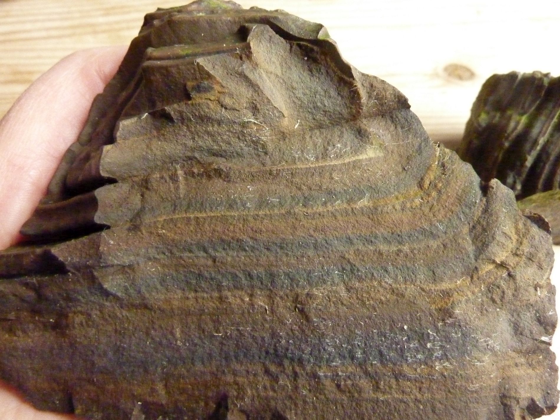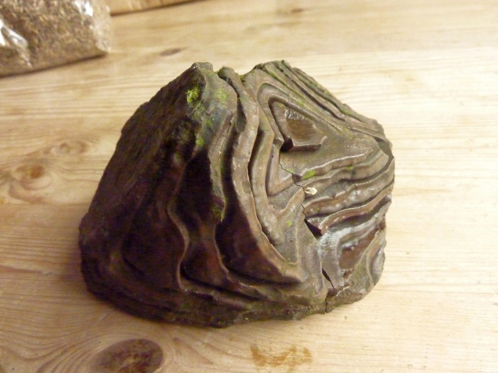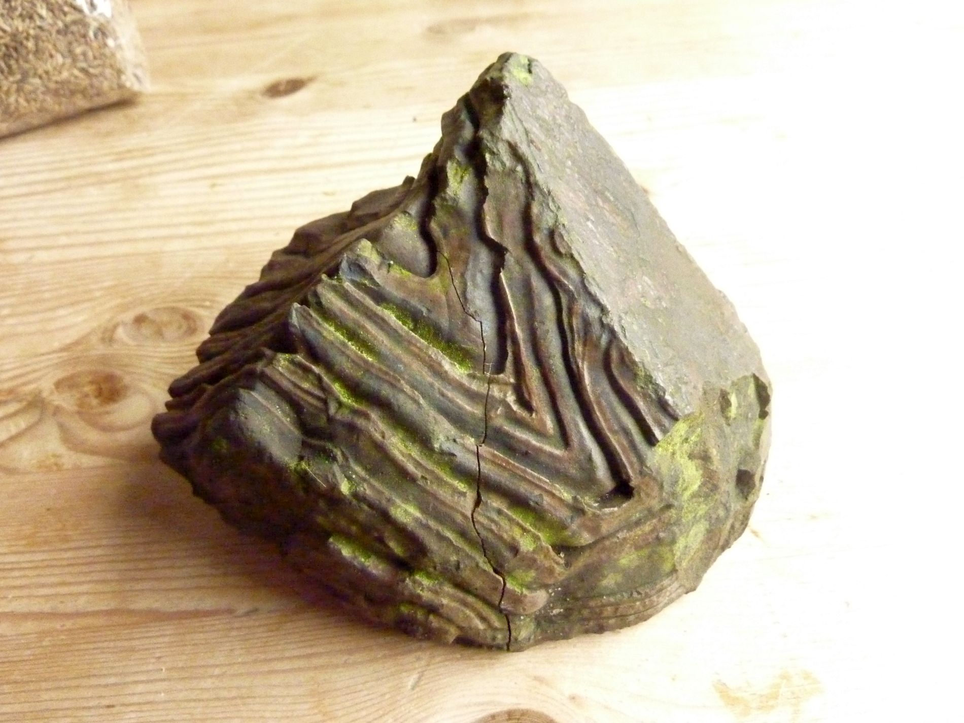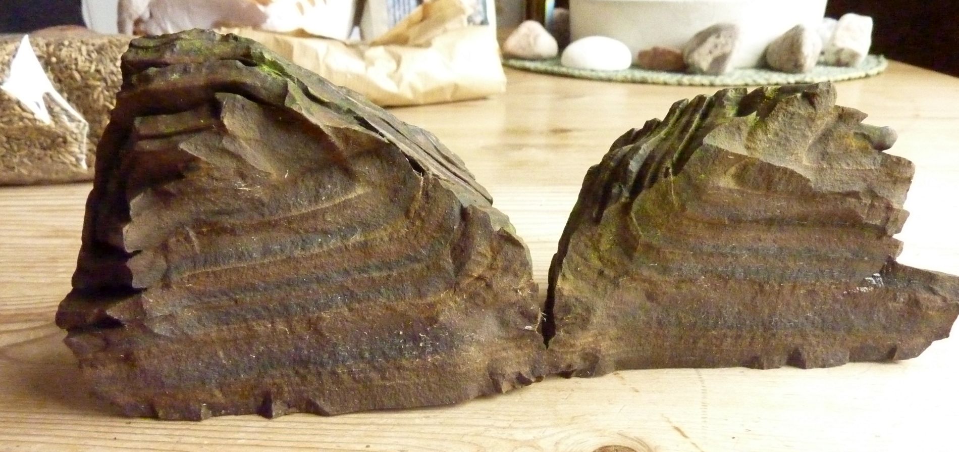 Diesen Stein, den jemand hier im Forum als Kieselschiefer identiviziert hat, ist durch die letzen langen anhaltenden Fröste zersprungen. Ich habe ihn schon bestimmt über 15 Jahre und er hat jeden Winter schadlos überstanden - bis jetzt....