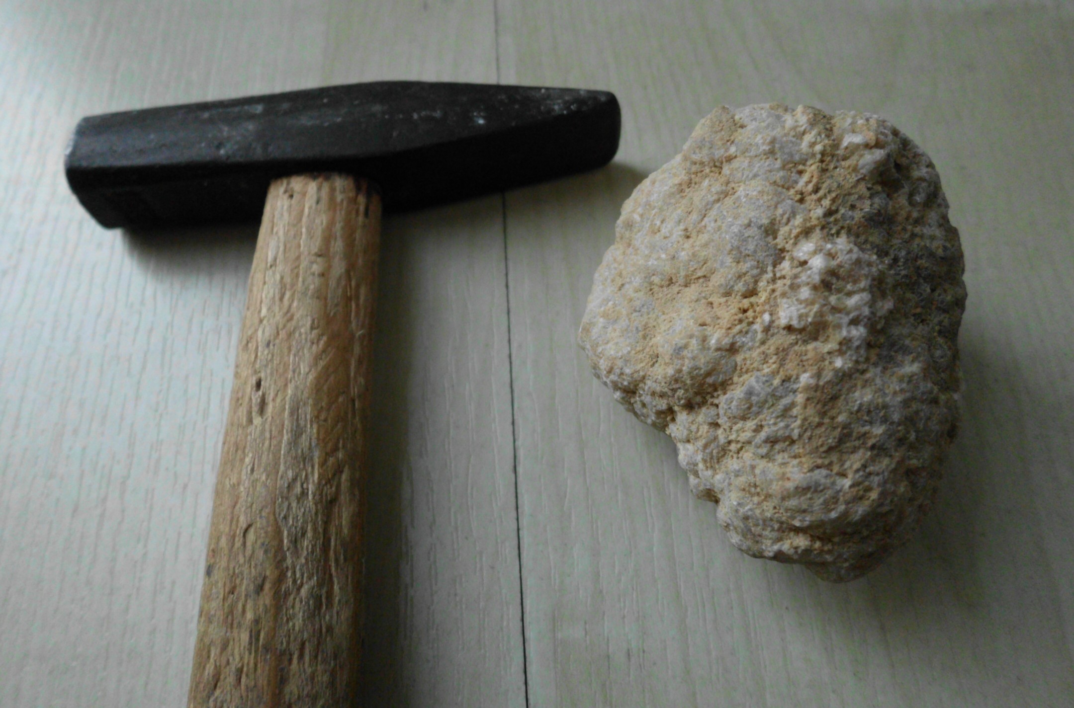 Dieses "Überraschungsei" brachte eine Freundin mir von Mallorca mit, sie sagte ich müsse nur mal mit dem Hammer kräftig draufhauen... Zunächst sah der Stein ja recht unscheinbar aus, aber als ich dann tatsächlich draufgehauen habe....