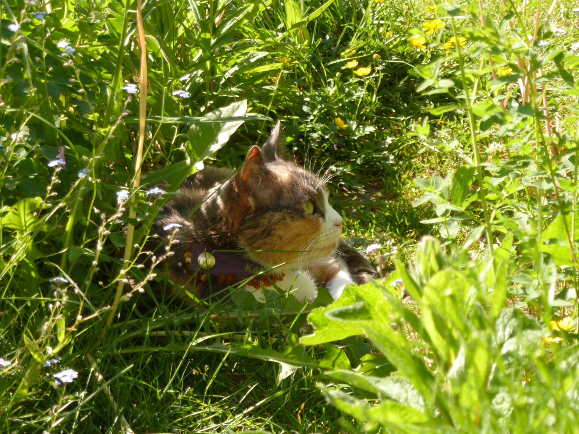 Heute wäre ich beinahe auf sie drauf getreten. :shock: Ich hatte sie gesucht und gerufen. Sie reagiert aber so gut wie nie auf´s Rufen :roll: :evil: Ich wollte dann gerade über ein Grasbüschel rüber steigen - und dahinter lag sie und sonnte sich....... :roll: